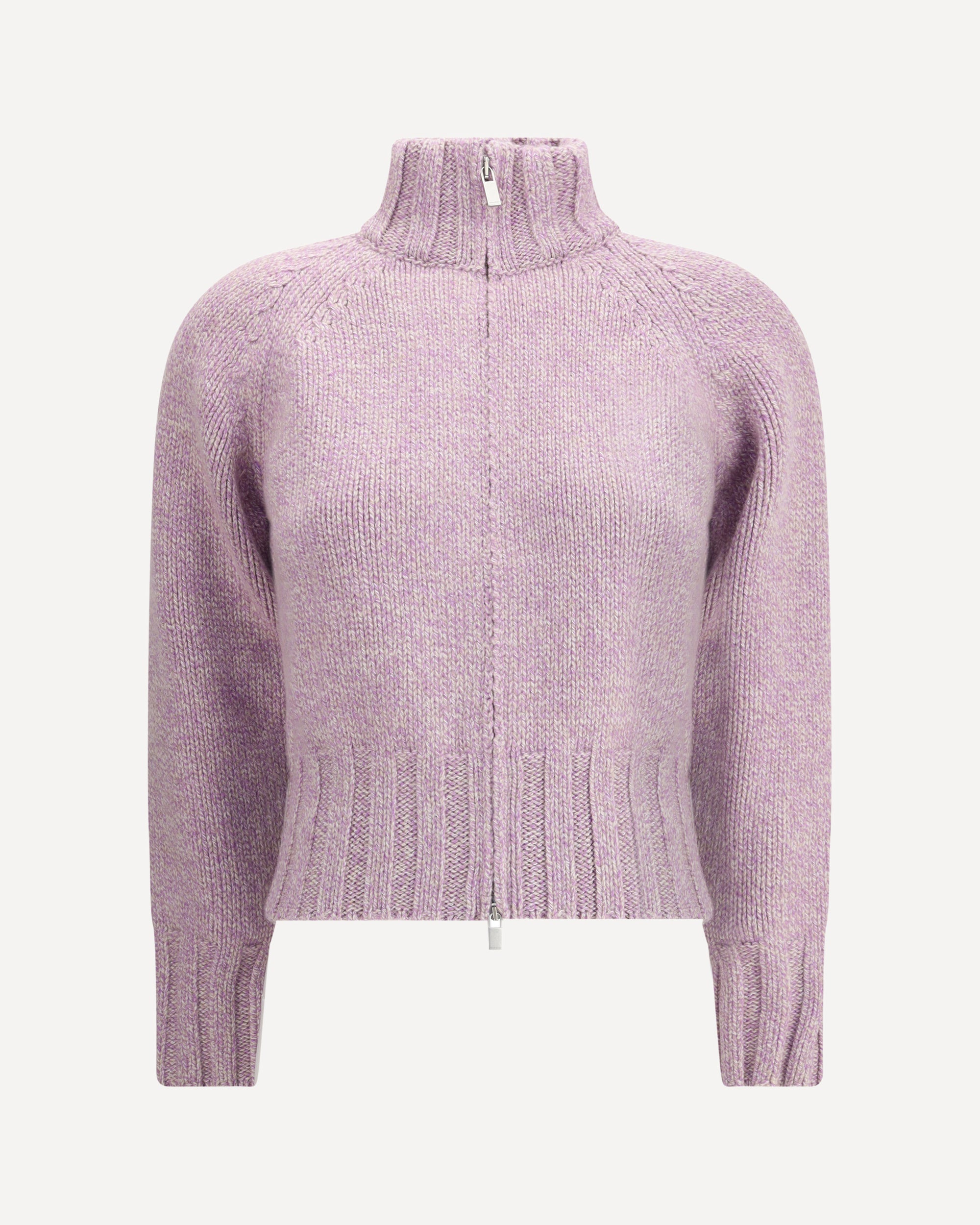 Magda Butrym's Zip Cardigan combines comfort and character in a bold design. Made of thick melange knit, it features a front zipper closure and large ribbed trim on the cuffs, hem and collar. An on-trend, wrap-around garment perfect for completing casual looks with a sophisticated touch. DETAILS - Sku: 262725_PINK - Season: AW25 - Fit: Regular - Composition: GENERAL 100% Kashmir/capra Hircus - MADE IN ITALY