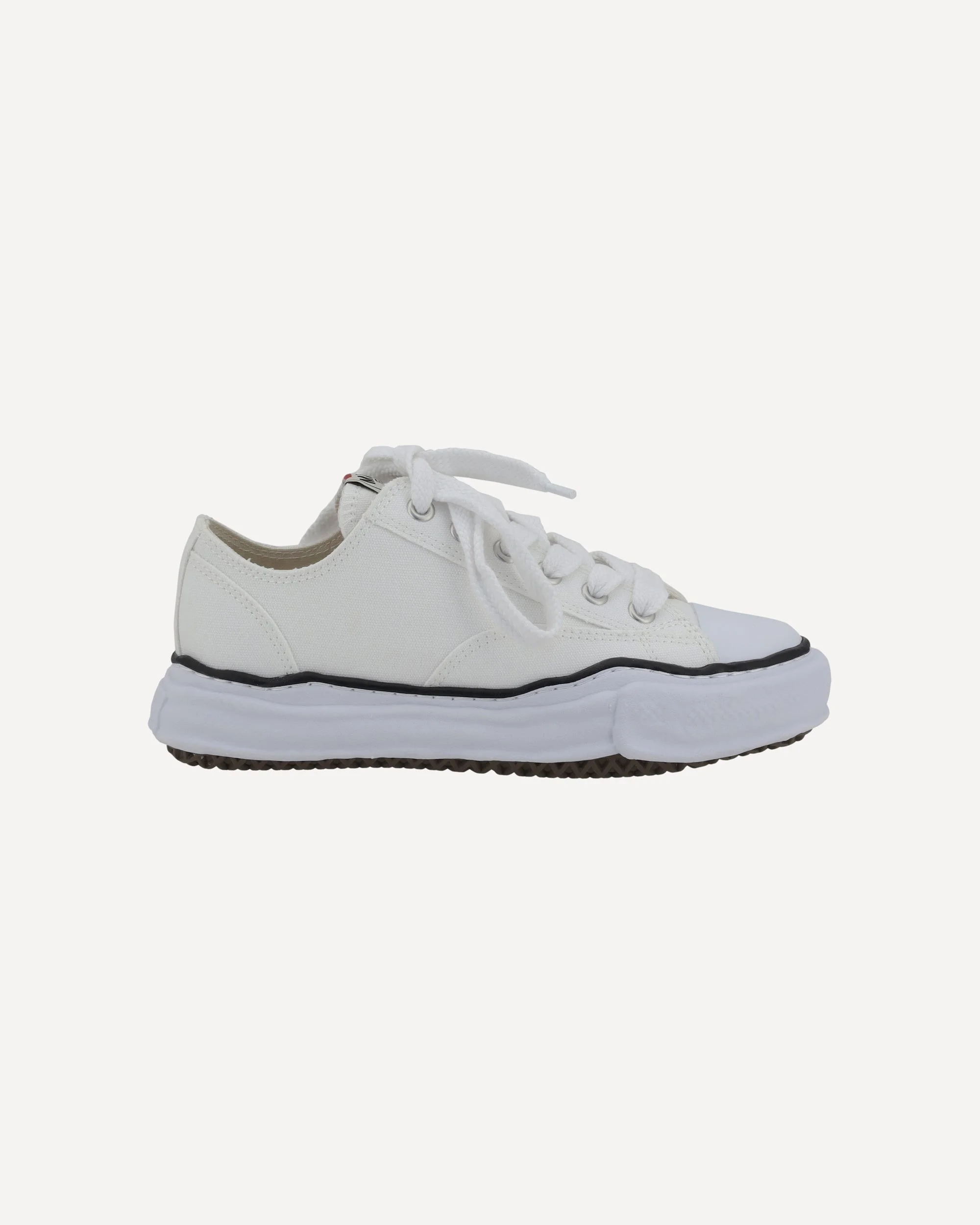 Maison Mihara Yasuhiro 's Peterson Sneakers feature a canvas upper embellished with contrast stitching that accentuates the minimalist design. The lace-up closure and logo-patched tongue add a distinctive touch, while the white rubber sole completes the sleek and versatile aesthetic. A great choice for those seeking a casual yet sophisticated look. DETAILS - Sku: A01FW702_WHITE - Season: SS25 - Composition: UPPER 100% Cotton SOLE 100% Rubber - MADE IN CHINA