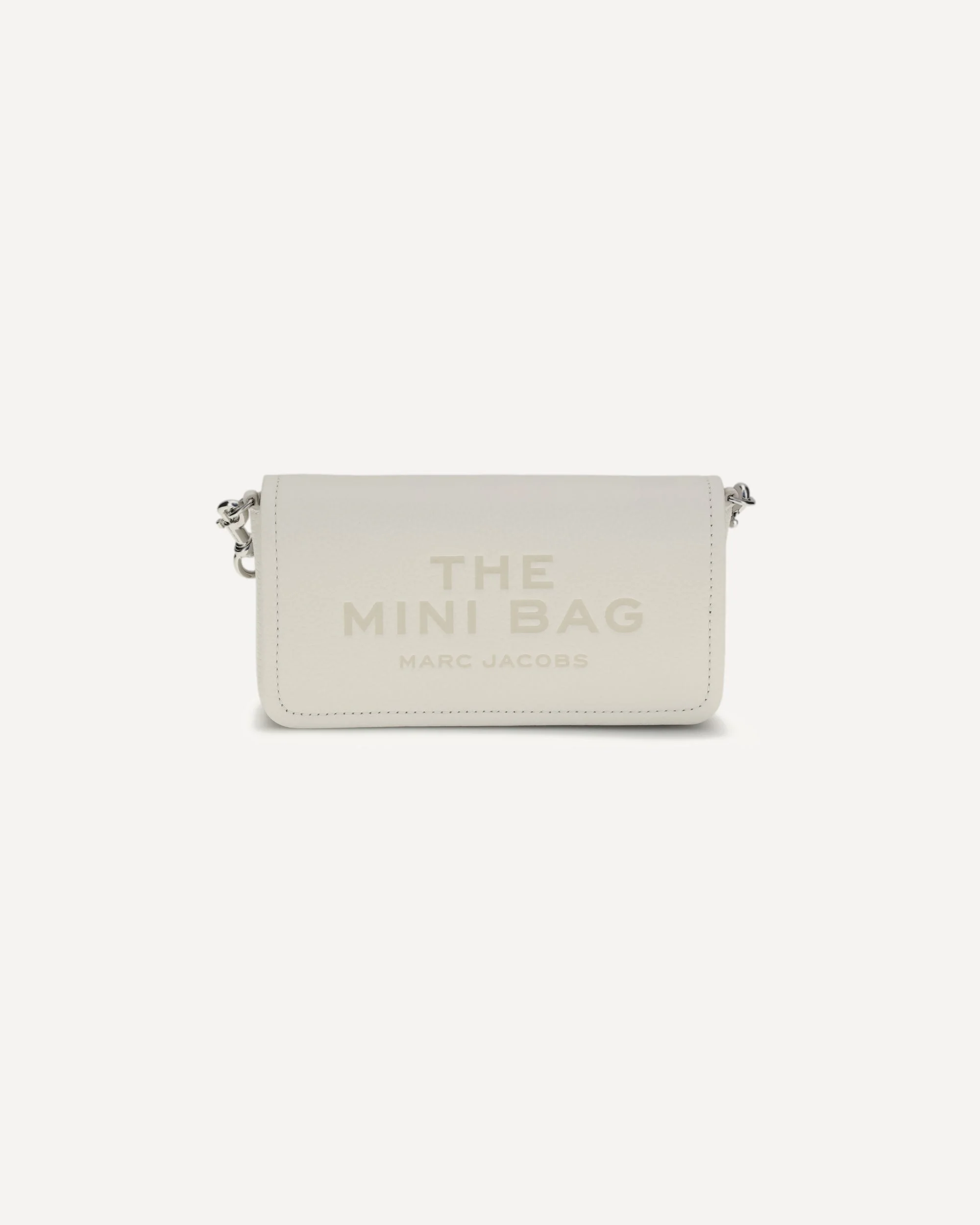 The Mini Bag leather Shoulder Bag by Marc Jacobs features a grained leather design. It features an adjustable and removable flat shoulder strap, with a front closure via a flap with a magnetic button. The brand's iconic monogram is press-stamped on the front, adding a distinctive touch. Inside, there is a single compartment for simple and practical functionality. DETAILS - Sku: 2S4SMN080S02_137 - Season: SS26 - Dimension: 21x21x5 - Composition: GENERAL 100% Calf Leather Bos Taurus - MADE IN VIETNAM