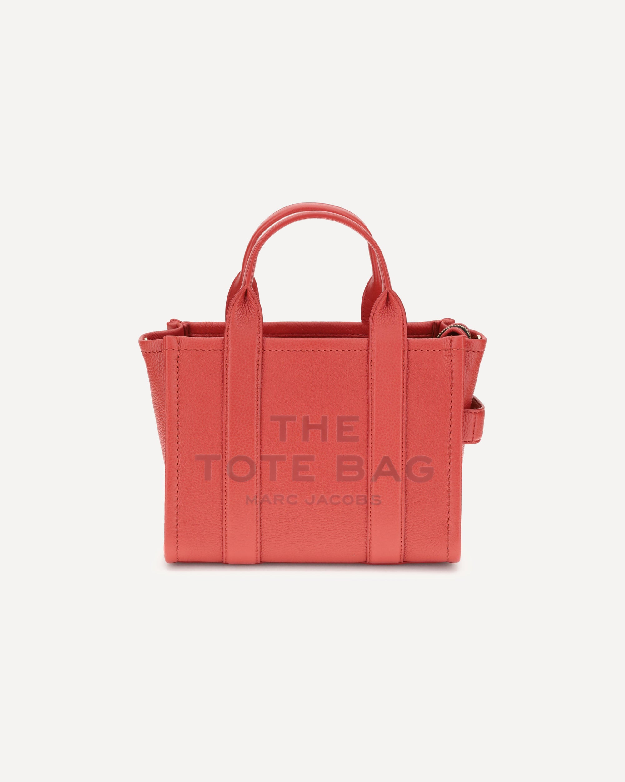 Marc Jacobs' The Small Tote handbag is made of grained leather, with a sleek and sturdy design. The two stiff tubular handles on top provide a comfortable grip, while the zippered closure keeps items inside secure. Inside, a single pocket offers additional practicality. The adjustable and removable flat shoulder strap adds versatility, allowing it to be carried over the shoulder as well. The brand's iconic monogram is contrastingly printed on the front, while the back features a leather patch with the logo applied by pressure, completing the bag's distinctive, modern look. DETAILS - Sku: H009L01SP21_617 - Season: AW25 - Dimension: 26x26x13 - Composition: GENERAL 100% Calf Leather Bos Taurus - MADE IN VIETNAM