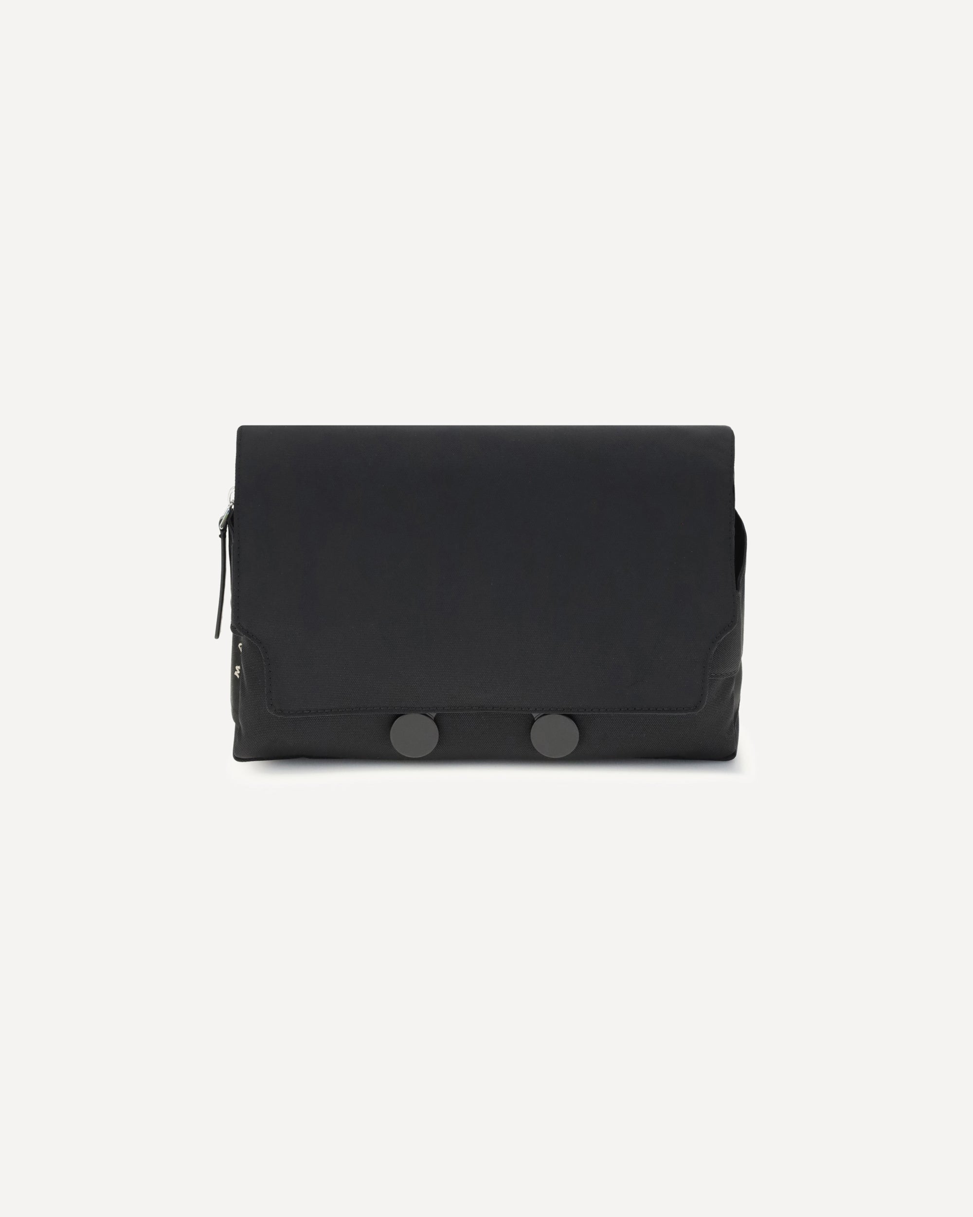 Marni's Cityscape Fanny Pack combines functionality and style with an essential, urban design. Made of waterproof and durable material, it is perfect for everyday use. It features a front flap with satin metal magnetic closure and engraved Marni lettering, while the back features an exterior flat pocket for quick access to essentials. The central zippered compartment provides security, and the adjustable belt ensures a versatile fit. Completing the design is the side maxi label with Marni logo for a distinctive and contemporary touch. DETAILS - Sku: MUMQ0023A0P8184_00N99 - Season: AW25 - Dimension: 27x27x5.5 - Composition: GENERAL 100% Polyamide - MADE IN CHINA