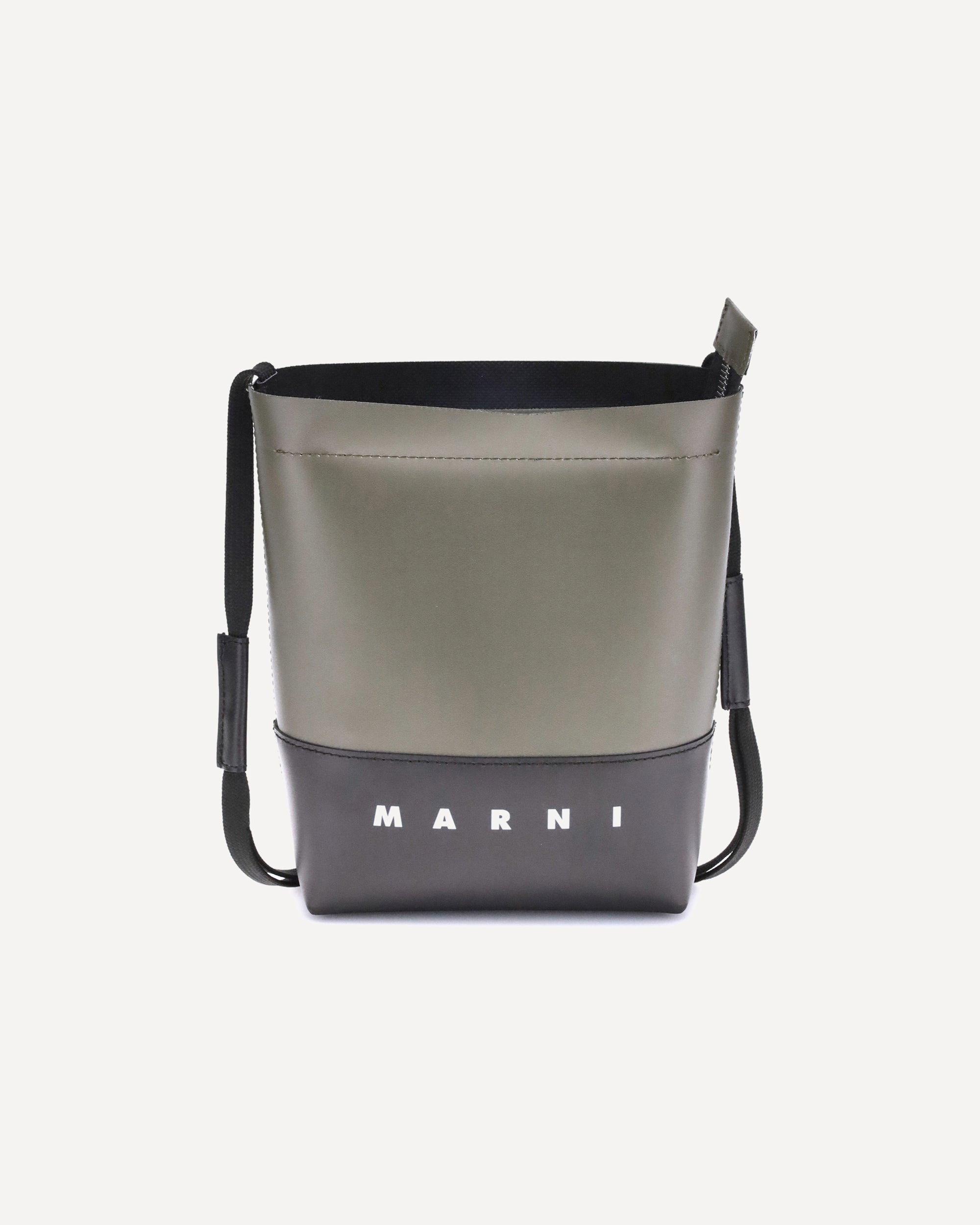 Marni's colorblock Shoulder Bag combines modern design and functionality. Featuring an adjustable ribbon shoulder strap for personalized comfort, it has a practical and secure zipper closure. A Marni logo print stands out on the front, while palladium metal elements add a touch of contemporary elegance. DETAILS - Sku: SBMQ0068A5P5769_ZO955 - Season: AW25 - Dimension: 14x14x4 - Composition: GENERAL 100% Polyester - MADE IN ITALY
