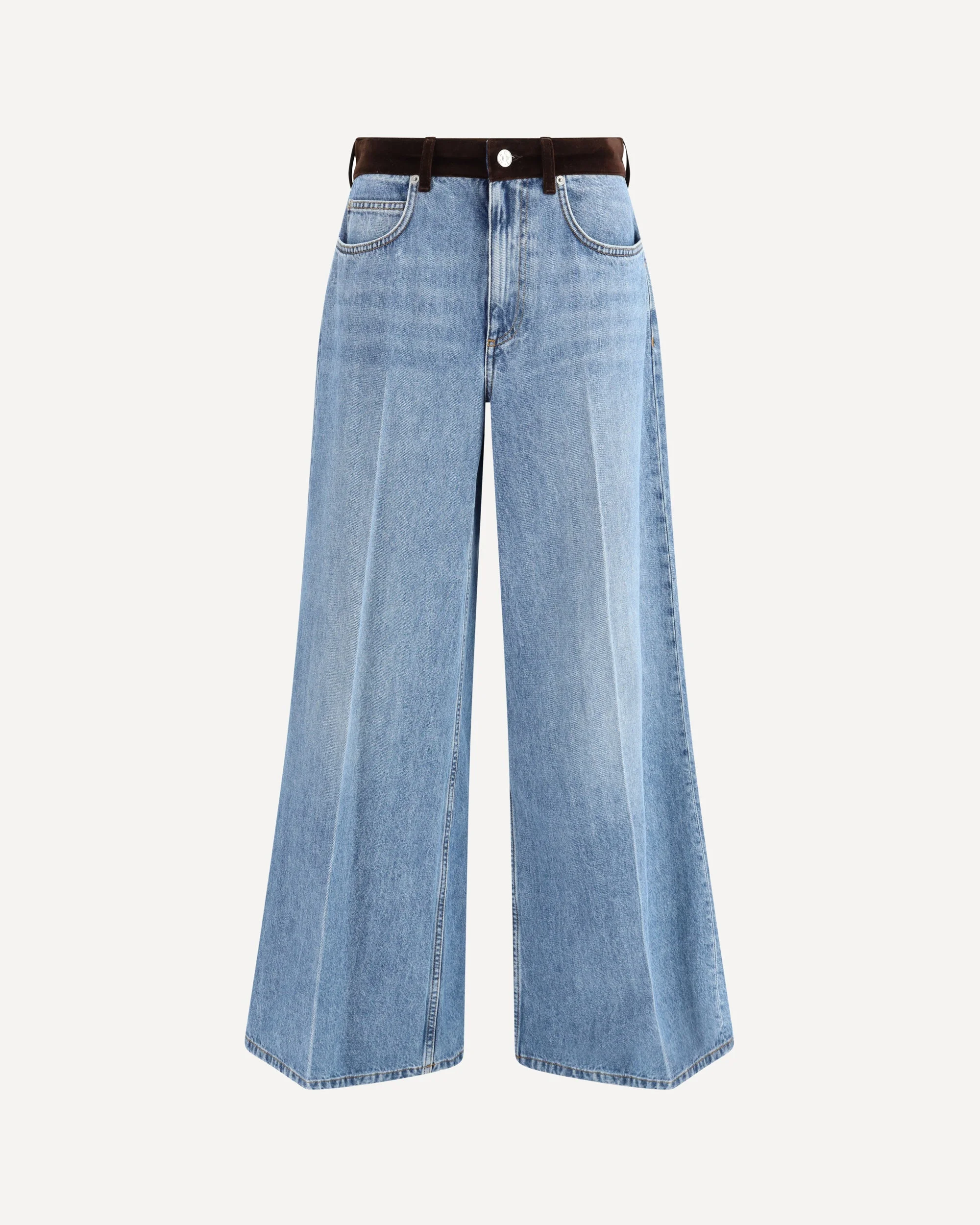 BLUE DENIM TROUSERS WITH VELVET WAISTBAND