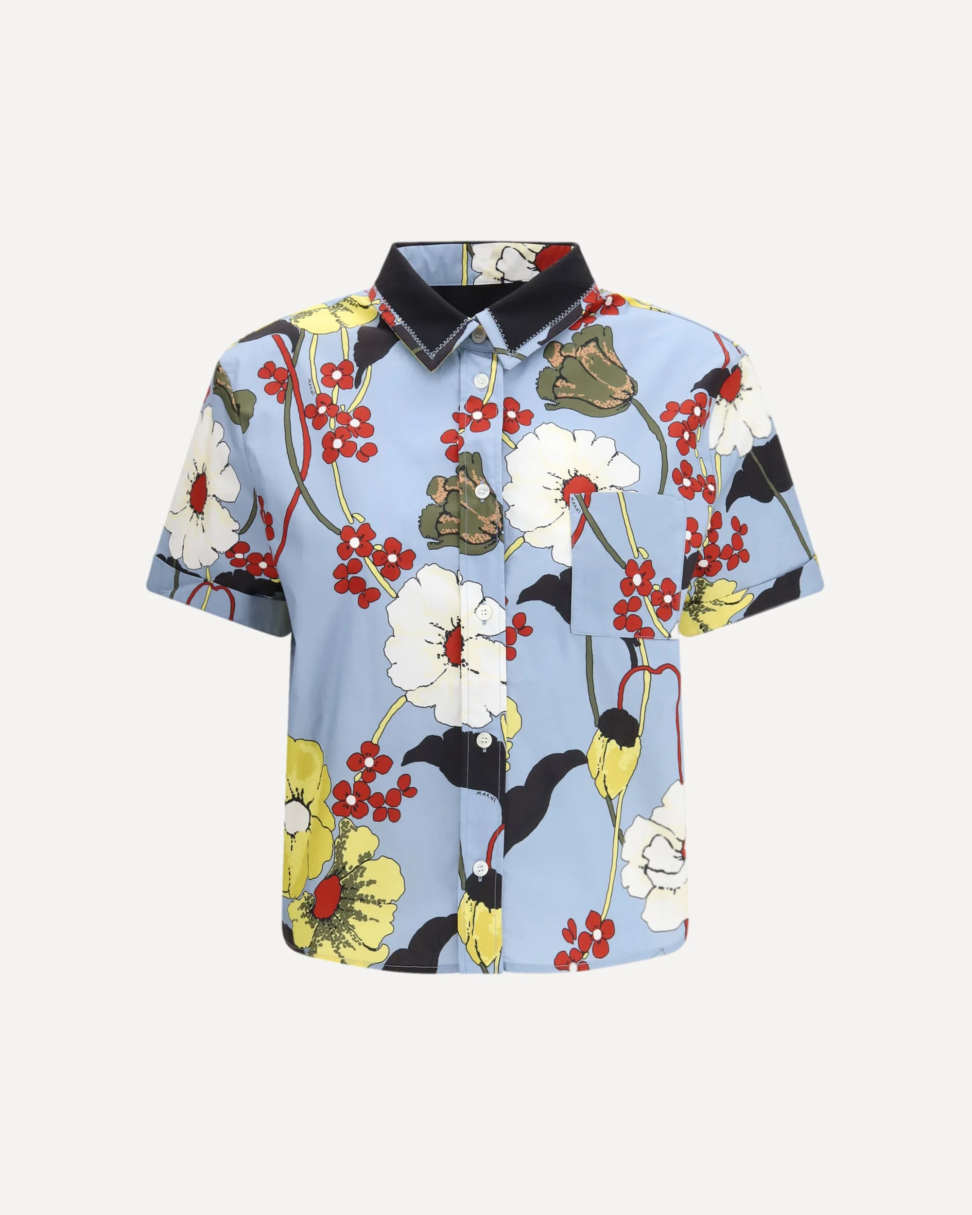 The floral-print Shirt by Marni features a vibrant design with short sleeves, a classic collar, and a front button closure. A chest patch pocket completes the piece, adding a functional touch to its signature aesthetic. DETAILS - Sku: CAMA0669QSUTC581_MFB31 - Season: SS26 - Fit: Oversize - Composition: GENERAL 100% Cotton - MADE IN ROMANIA