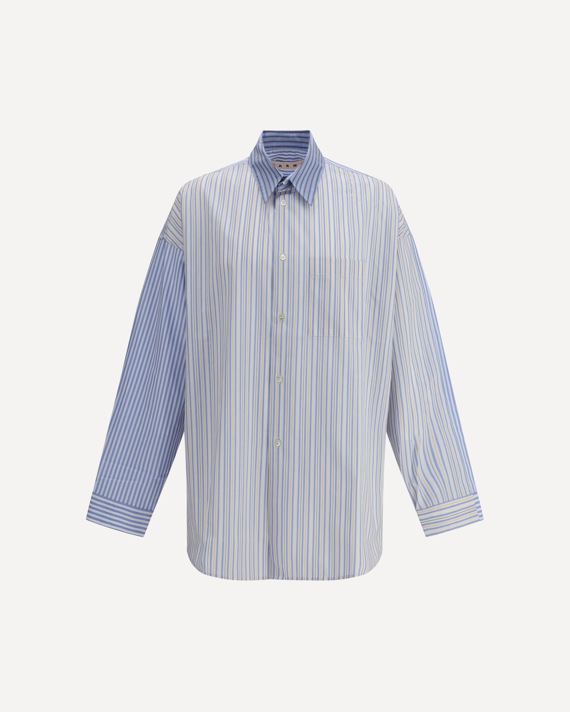 Cotton Shirt by Marni, enhanced by a striped pattern with a contemporary flair. The design features a classic collar, front button closure and adjustable button cuffs. The oversized fit gives the garment a relaxed and modern attitude, perfect for looks with a sophisticated yet casual style. DETAILS - Sku: CUMU0061SQUTC529_STB50 - Season: AW25 - Fit: Oversize - Composition: GENERAL 100% Cotton - MADE IN ROMANIA