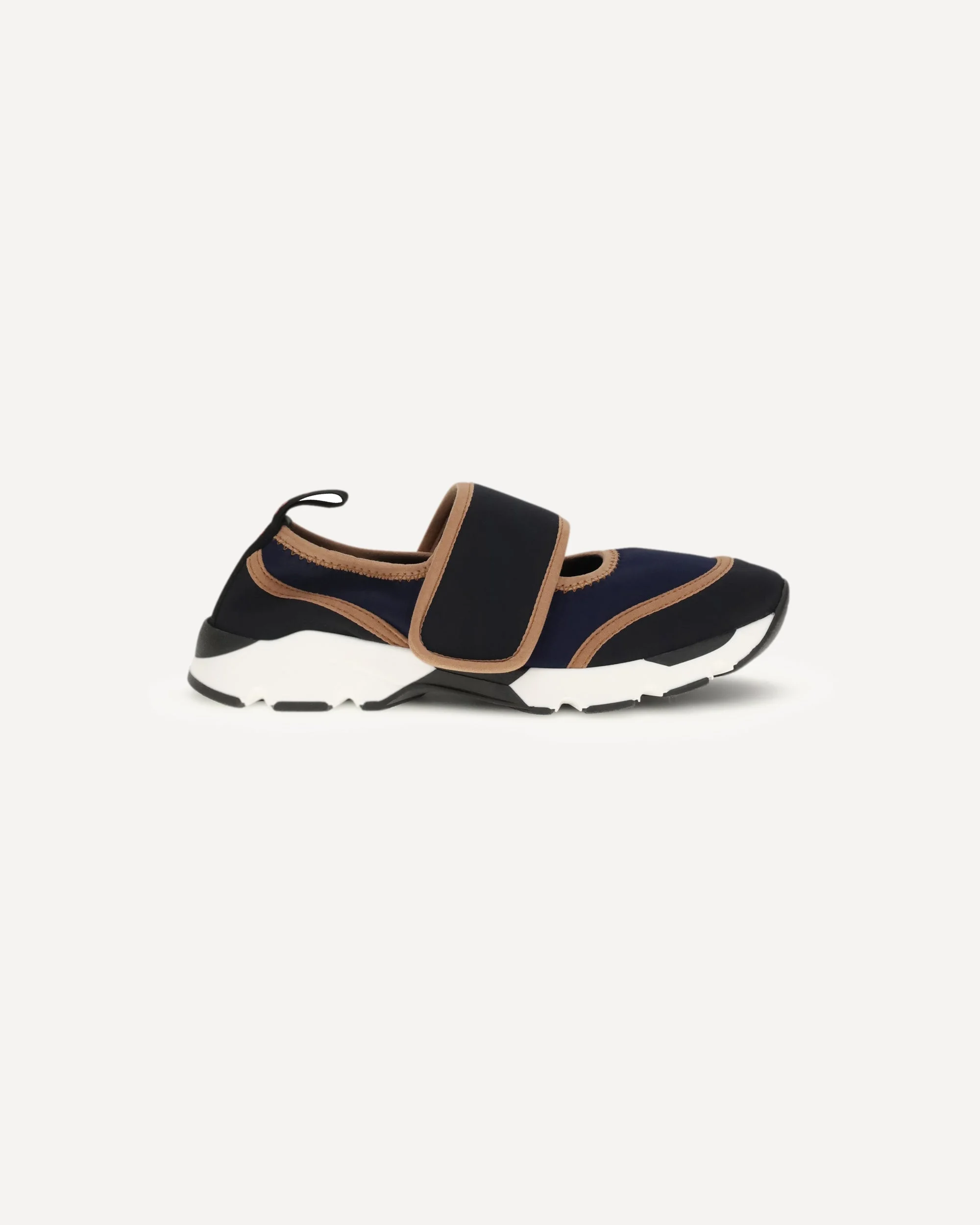 The Running Mary-Jane Sneakers by Marni reinterpret the classic ballerina style with a sporty twist. The two-tone design with contrasting piping and deconstructed slip-on construction ensure comfort and style, while the wide Velcro closure ensures practicality. The model is completed with a logo pull-tab on the heel and a soft rubber sole for a light and dynamic gait. DETAILS - Sku: SNZW020602P7613_ZP081 - Season: SS26 - Composition: UPPER 80% Polyamide 20% Elastane - MADE IN ITALY