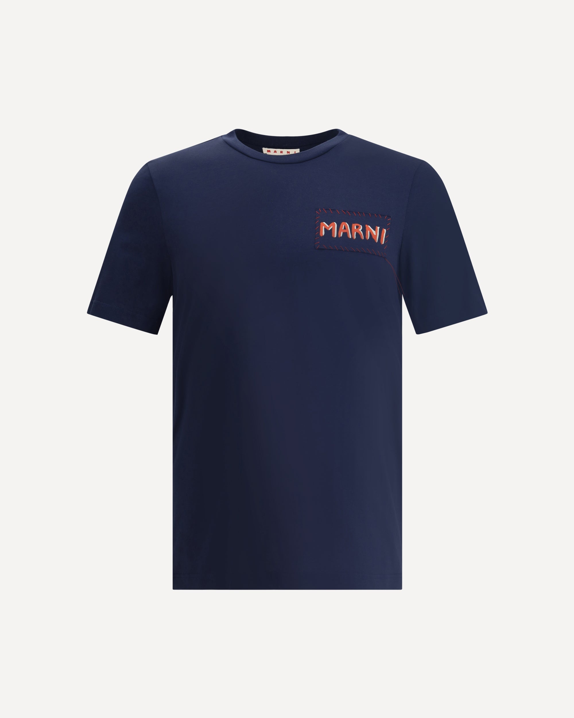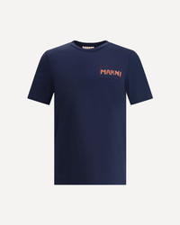 Marni's cotton T-Shirt features a sleek, contemporary design. The ribbed crew neck offers a comfortable and classic fit, while the monochrome pattern keeps the look clean and versatile. The brand's iconic monogram patch applied to the front adds a distinctive and recognizable touch. DETAILS - Sku: HUMU0198X0UTC446_00B99 - Season: AW25 - Fit: Regular - Composition: GENERAL 100% Cotton - MADE IN ITALY