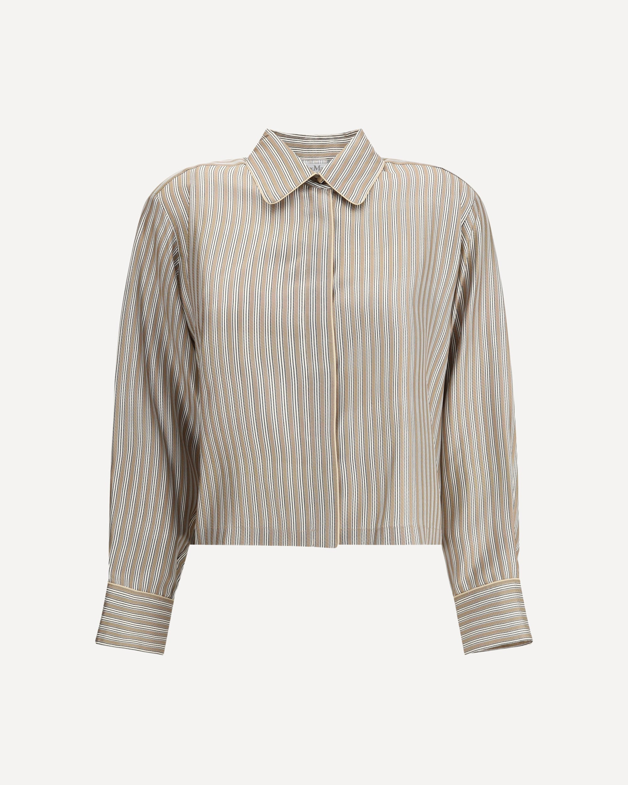 Max Mara's Brama silk Shirt is made of striped fabric and finished with elegant details. It features a concealed button closure, classic pointed collar and long sleeves with a cuff and button. An essential garment with sophisticated style. DETAILS - Sku: 2521116171600_002 - Season: AW25 - Fit: Regular - Composition: GENERAL 100% Silk - MADE IN ITALY