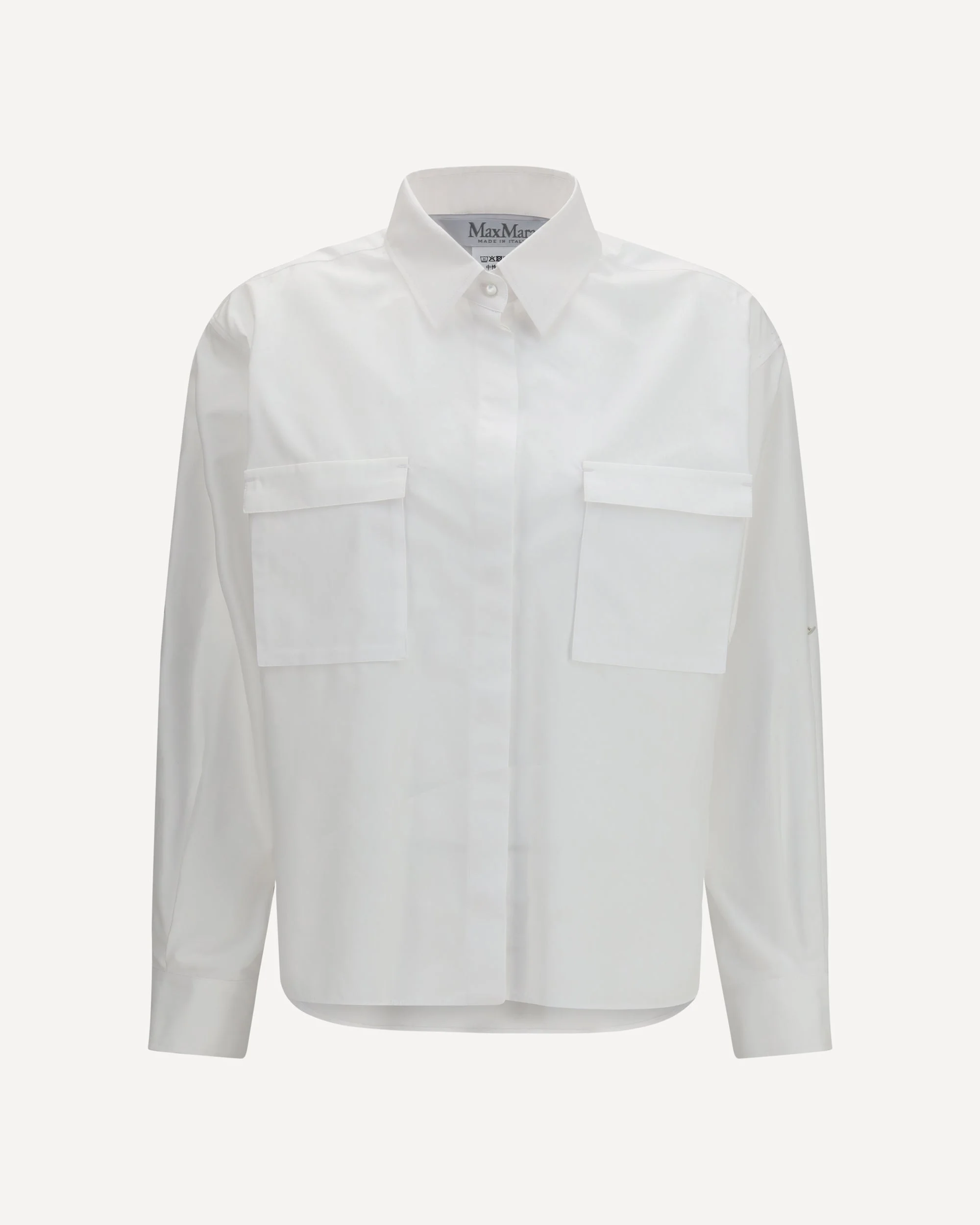 The cotton Shirt by Max Mara stands out for a classic silhouette that interprets the contemporary wardrobe with balance and simplicity. The cotton shirt model by Max Mara is crafted in cotton and features a French collar and slightly dropped shoulders that define the structure of the garment. The concealed front button fastening keeps the design clean, while patch chest pockets with flap introduce a functional detail. Long sleeves with buttoned cuffs and a curved hem complete the cotton shirt by Max Mara with a natural and versatile silhouette. DETAILS - Sku: 2611111042600_001 - Season: SS26 - Fit: Regular - Composition: GENERAL 100% Cotton - MADE IN ITALY
