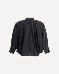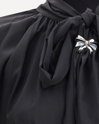 The Leonida silk Blouse features a loose, flowing fit with batwing raglan sleeves that add lightness to the design. The V-neckline is enhanced by a bow-tie scarf collar, while the high cuffs feature an elegant covered side button. At the back, a center-cut pattern and a longer asymmetrical hem complete the garment, which is embellished with a removable metal jewel loop. DETAILS - Sku: 2521116081600_007 - Season: AW25 - Fit: Regular - Composition: GENERAL 100% Silk - MADE IN ITALY