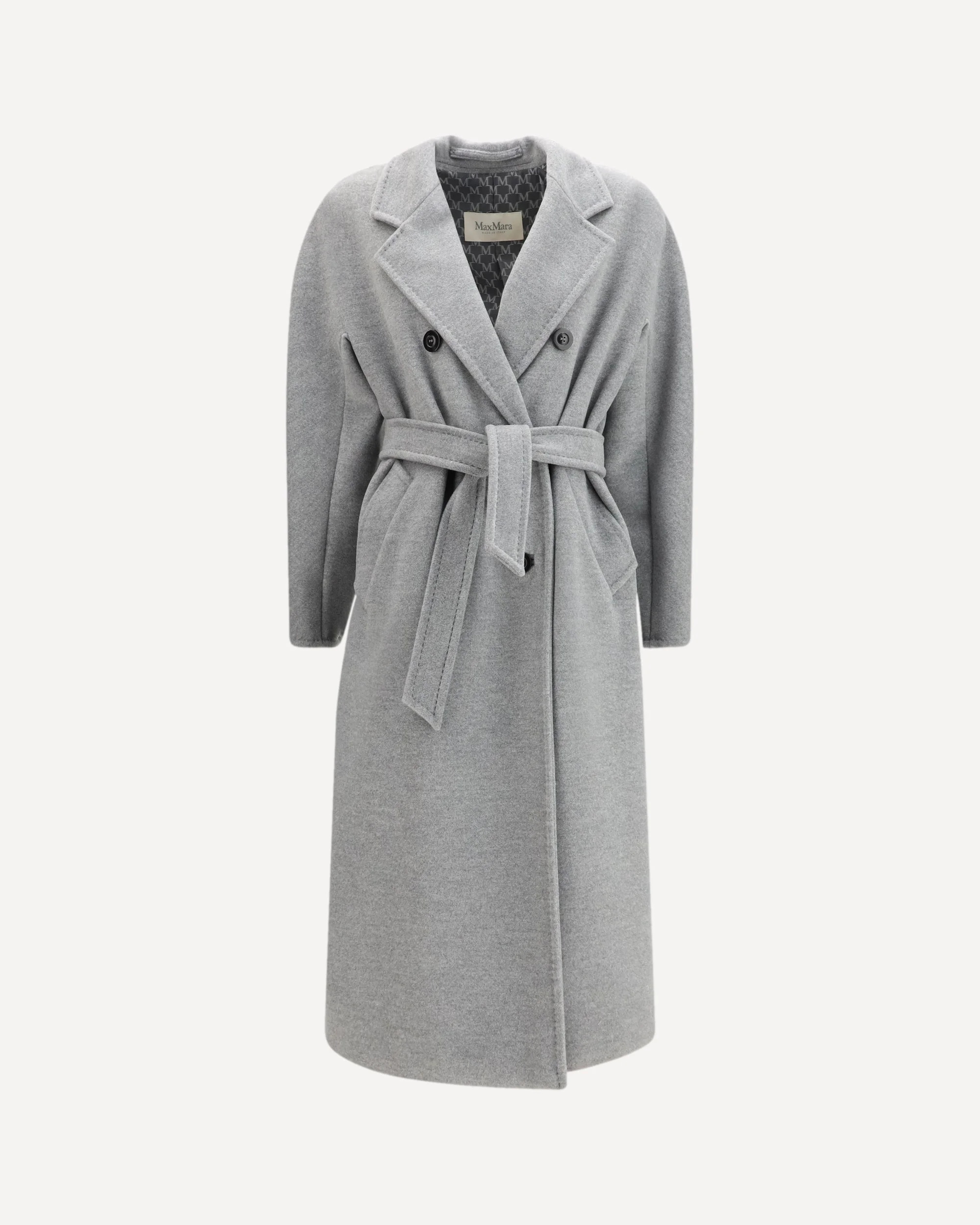 The Madame Coat in virgin wool and cashmere by Max Mara is a luxury garment that combines elegance and comfort. The classic lapel and double-breasted button closure offer a sophisticated design, while the long sleeves provide warmth in colder seasons. The adjustable and removable belt allows you to customize the fit, accentuating the silhouette. Lined for added comfort and durability, this coat is perfect for those seeking a refined and versatile style, ideal for any occasion. DETAILS - Sku: 2611018011600_018 - Season: SS26 - Fit: Regular - Composition: GENERAL 90% Fleece Wool 10% Kashmir/capra Hircus - MADE IN ITALY