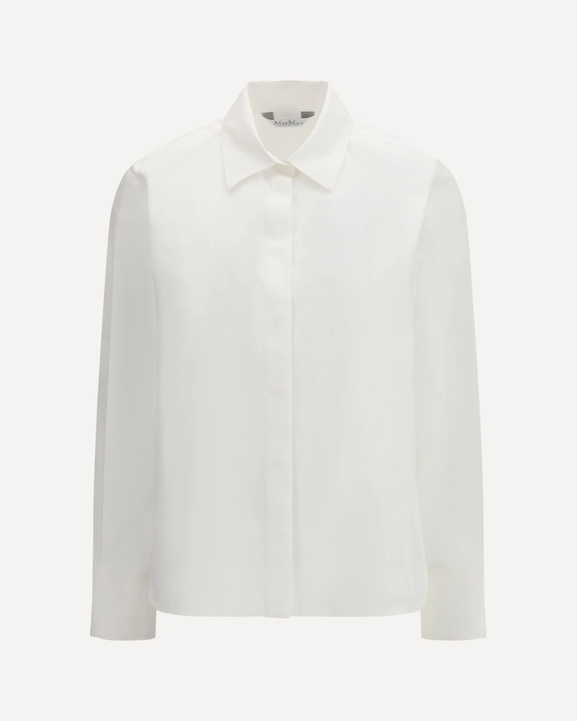 The Maroso Shirt in cotton poplin by Max Mara is an elegant and modern garment, perfect for a refined and versatile look. The short pointed collar and concealed button closure give it a clean and sophisticated look. The rounded cuffs with buttons add a delicate touch, while the side slits at the bottom and the back yoke ensure a comfortable and dynamic fit. The back vent completes the design, making this shirt a must-have for those seeking comfort without compromising on style. DETAILS - Sku: 2611111101600_001 - Season: SS26 - Fit: Regular - Composition: GENERAL 100% Cotton - MADE IN ITALY