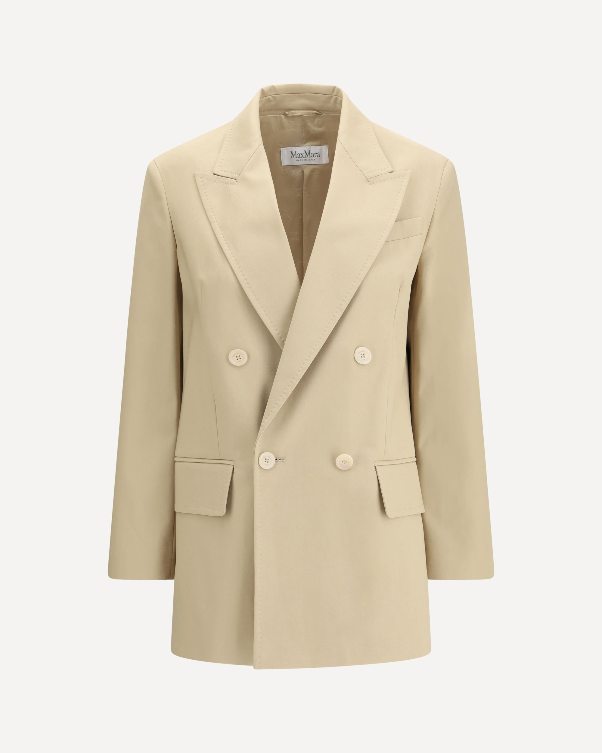 The Olimpia stretch canvas Jacket reimagines the double-breasted blazer with a relaxed yet contemporary elegance. Its straight cut and slightly dropped shoulders balance tailored precision with modern comfort, while the peak lapels and buttoned cuffs highlight its timeless character. Featuring a chest pocket, flap pockets, and a double back vent, it is finished with refined details such as sartorial topstitching and a Monogram jacquard lining. A versatile and sophisticated piece, designed to effortlessly elevate both formal and everyday looks. DETAILS - Sku: 2521046071600_012 - Season: AW25 - Fit: Regular - Composition: OUTER 95% Cotton 5% Elastane INNER 65% Acetate 35% Polyester - MADE IN ITALY