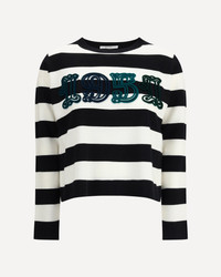 Max Mara's Viterbo Sweater is made of pure virgin wool and features a brown and white striped pattern, enhanced by "1951" flocked embroidery on the front. An iconic garment with an essential design, perfect for creating sophisticated and comfortable looks during the cold season. DETAILS - Sku: 2521366091600_007 - Season: AW25 - Fit: Regular - Composition: GENERAL 100% Fleece Wool - MADE IN ITALY