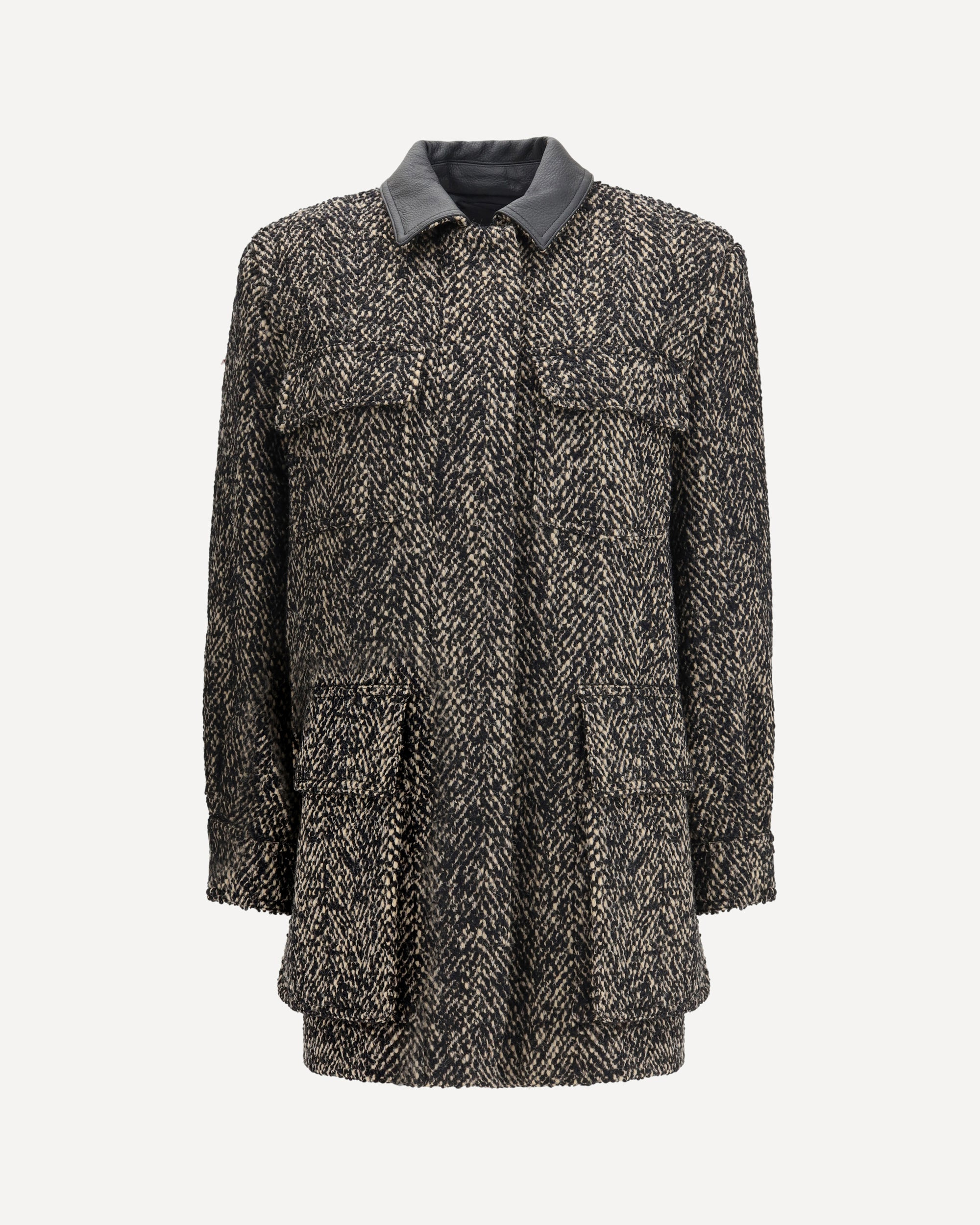 The Max Mara Wool tweed Jacket offers a contemporary take on the safari style, blending structure with understated luxury. Crafted in wool tweed, it features a straight silhouette and four patch pockets with flaps on the front, enhancing its utilitarian inspiration. The leather shirt collar adds a refined contrast, while the concealed zip fastening ensures a clean finish. Shirt-style cuffs with press buttons and side vents at the back complete the design. Fully lined for comfort, this piece strikes the balance between function and elegance. DETAILS - Sku: 2521086143600_003 - Season: AW25 - Fit: Regular - Composition: OUTER 93% Fleece Wool 7% Polyamide INNER 100% Viscose - MADE IN ITALY