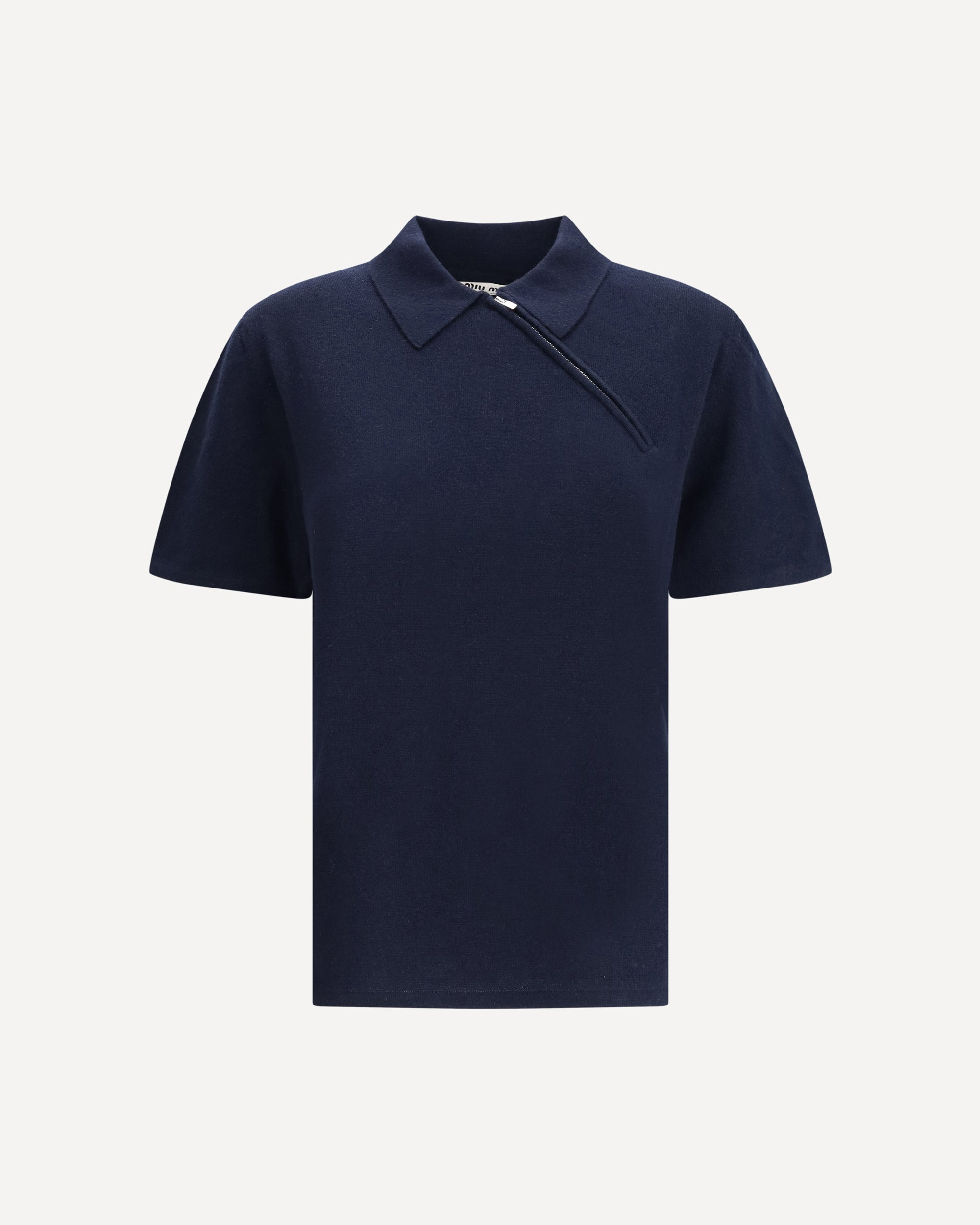 The Short-Sleeve Sweater by Miu Miu is crafted from luxurious navy Cashmere, combining elegance and comfort in a contemporary design. Featuring a ribbed knit collar and a distinctive diagonal zip, this refined piece showcases Italian craftsmanship and offers a versatile, sophisticated option for standalone wear or layering DETAILS - Sku: MML00XSOOO18A9_F0008 - Season: AW25 - Fit: Regular - Composition: GENERAL 100% Kashmir/capra Hircus
