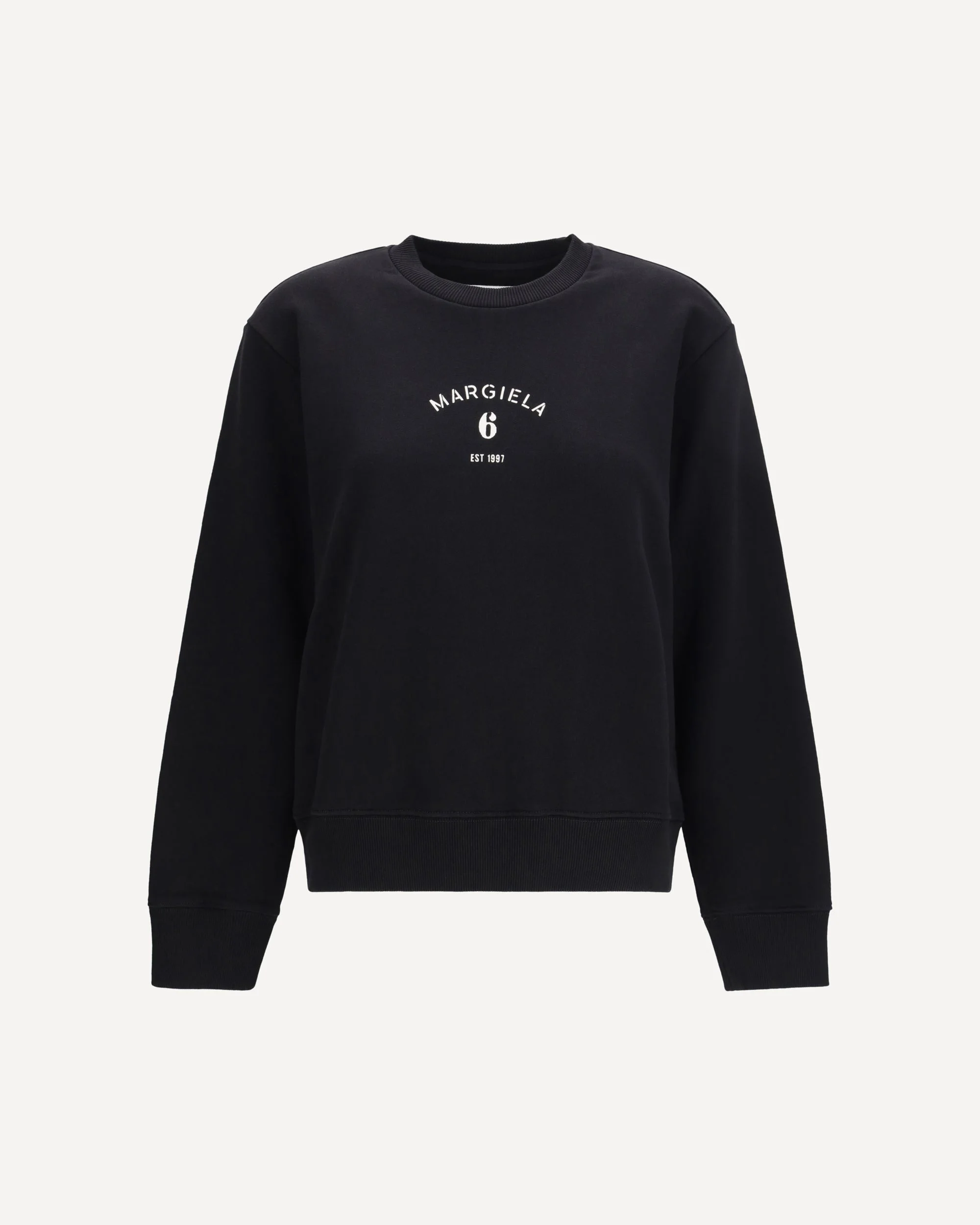 The crewneck sweatshirt with logo by MM6 is made from 100% high-quality cotton and features a clean, contemporary design. It showcases the MM6 logo on the front and the classic white horizontal seam on the back, an iconic signature of the brand. Finished with ribbed trims at the collar, cuffs, and hem, it offers a structured and comfortable fit, with a regular-cut crewneck silhouette. DETAILS - Sku: S62GU0145M25014_900 - Season: SS26 - Fit: Regular - Composition: GENERAL 100% Cotton - MADE IN ITALY