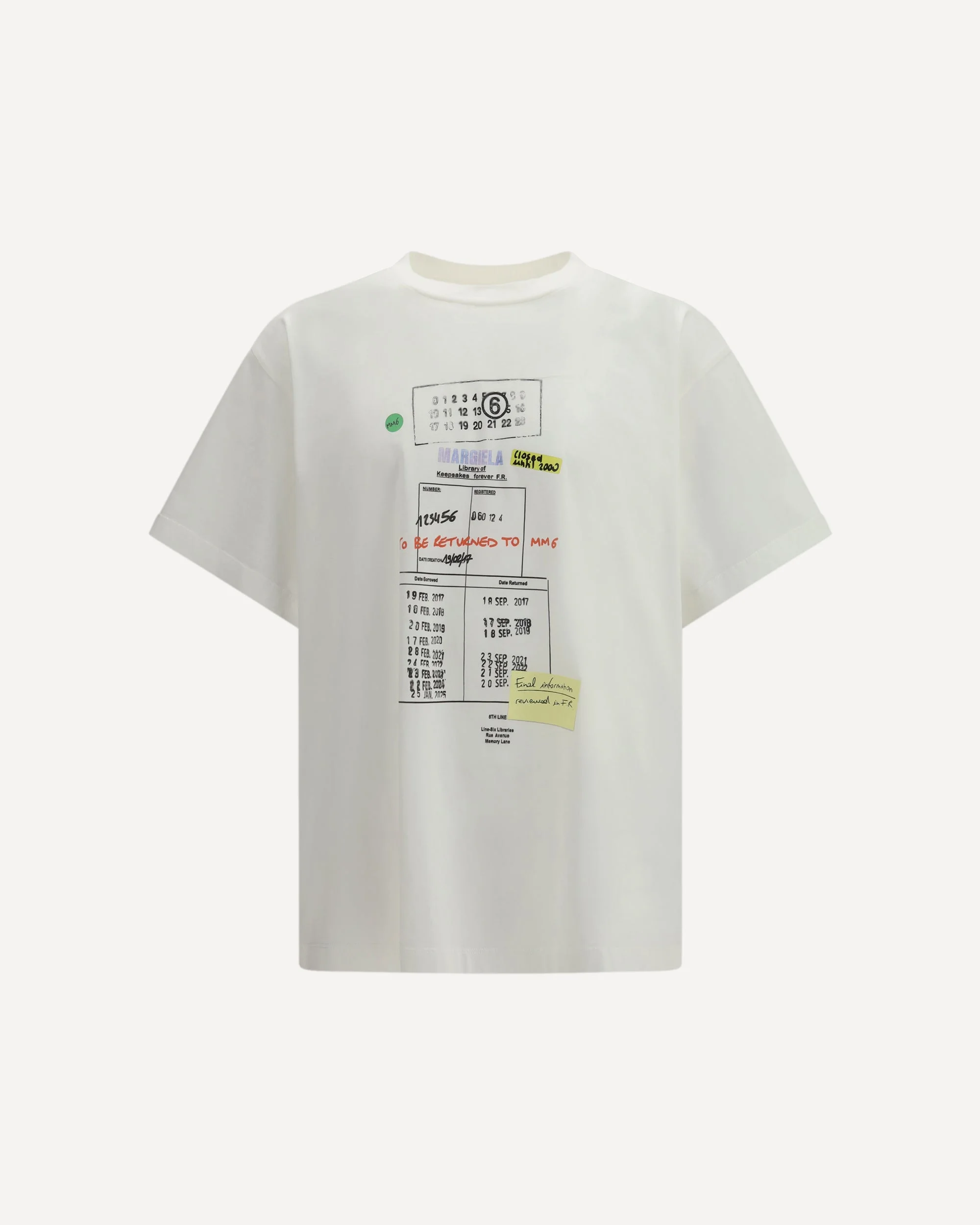 The graphic print T-shirt by MM6 is a casual garment with a bold style, featuring an eye-catching graphic print on the front. With a crew neck and short sleeves, it offers a comfortable and versatile fit, ideal for adding a touch of personality to your everyday looks. Perfect for those seeking a mix of comfort and bold style. DETAILS - Sku: SH0GC0070M20170_101 - Season: SS26 - Fit: Regular - Composition: GENERAL 100% Cotton - MADE IN PORTUGAL