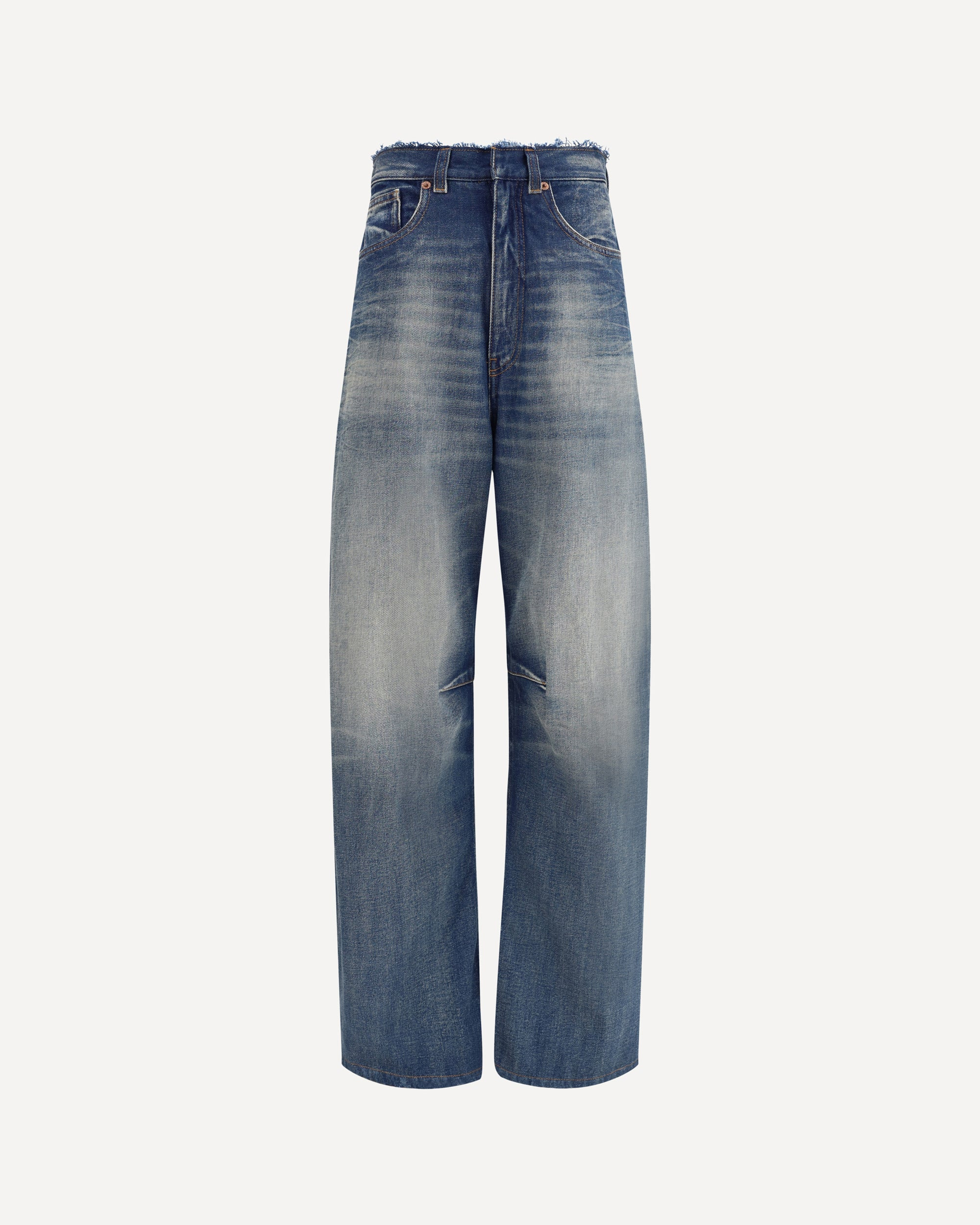 MM6's wide leg Jeans feature a wide-leg, high-waisted silhouette perfect for a modern, relaxed look. Made in the classic five-pocket pattern, they are finished with a frayed base and front zip-and-button closure for a casual, edgy feel. DETAILS - Sku: S52LA0266M30017_962 - Season: AW25 - Fit: Regular - Composition: GENERAL 100% Cotton - MADE IN ITALY