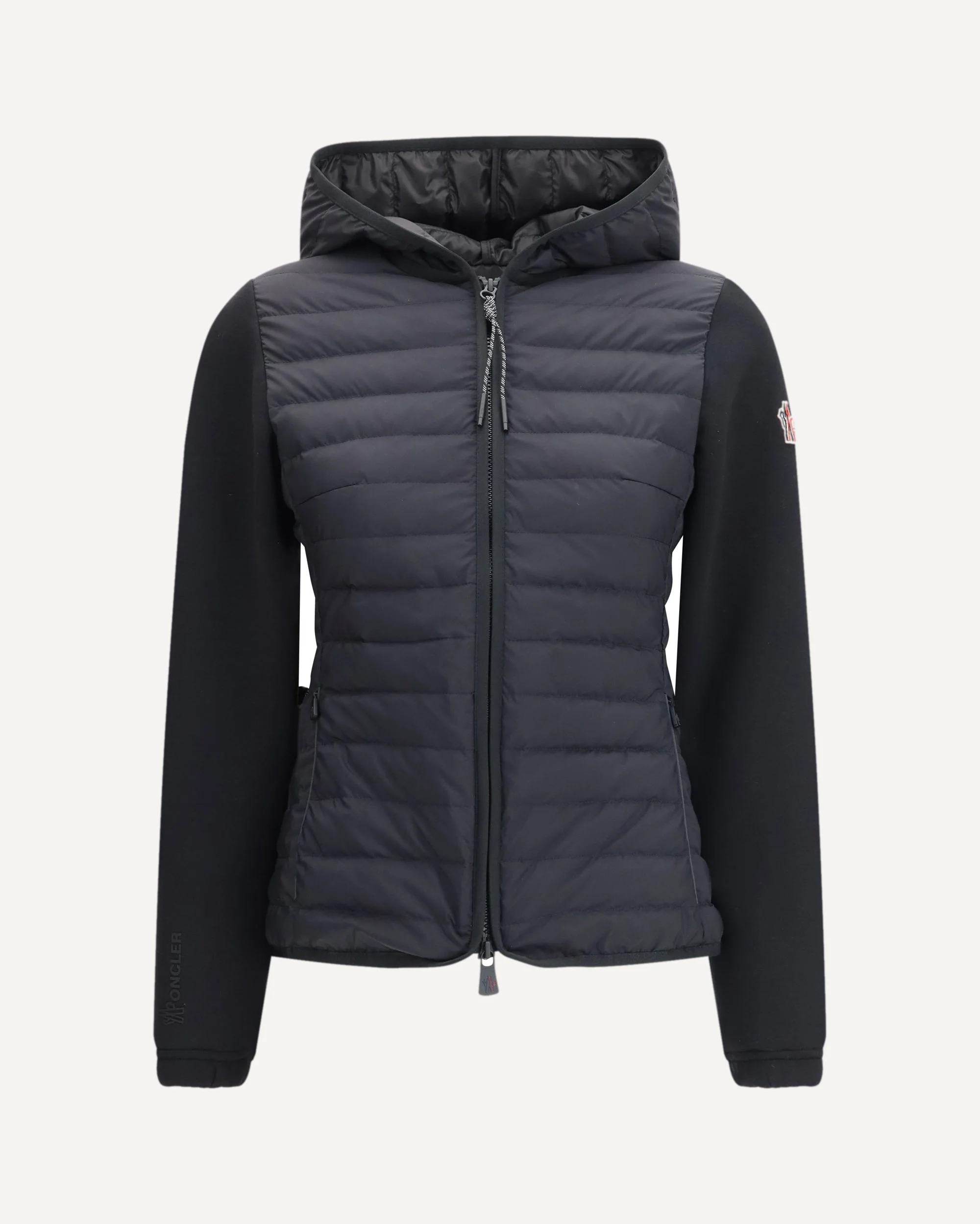 The hooded Cardigan by Moncler Grenoble combines technical functionality with a contemporary aesthetic. Designed with a double-slider front zip for versatility and ease, it features zippered welt pockets for practicality. A drawstring at the waist allows for an adjustable fit, completing a piece created to deliver comfort, performance, and a clean, modern style. DETAILS - Sku: L10988G0000389BC9_999 - Season: SS26 - Fit: Regular - Composition: OUTER 100% Polyamide INNER 100% Polyester - MADE IN MACAO