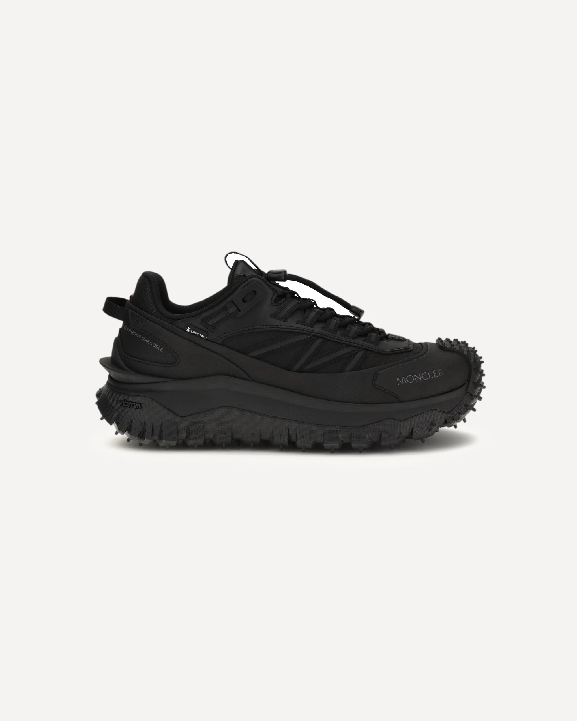 The Trailgrip GTX Sneakers by Monlcer are designed to offer high performance and comfort in all conditions. The upper combines nylon, TecTuff, and leather, while the mesh lining with a waterproof GORE-TEX® membrane ensures protection and breathability. The lace-up model is completed by a TPU spoiler and an EVA midsole with a carbon fiber insert between the midsole and outsole for greater stability and responsiveness. The VIBRAM® Megagrip rubber outsole guarantees grip and durability, making these sneakers ideal for technical outdoor and urban use. DETAILS - Sku: L109A4M00260M7208_999 - Season: SS26 - Composition: UPPER 100% Polyamide SOLE 100% Rubber - MADE IN VIETNAM