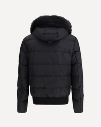 The Cloud Bomber Neoshear down Jacket by Moose Knuckles is a versatile and high-performance winter piece, combining lightweight warmth with protection. Made from waterproof and windproof fabric, it ensures comfort even in harsh conditions. The duck down and feather filling provides excellent insulation without compromising breathability. A two-way front zip closure, a functional hood with detachable lamb fur trim, and practical pockets complete the design, while the Moose Knuckles logo applique adds a distinctive, iconic touch. DETAILS - Sku: M35MB005S_305 - Season: AW25 - Fit: Regular - Composition: GENERAL 100% Polyester