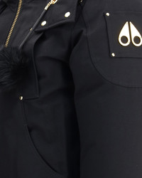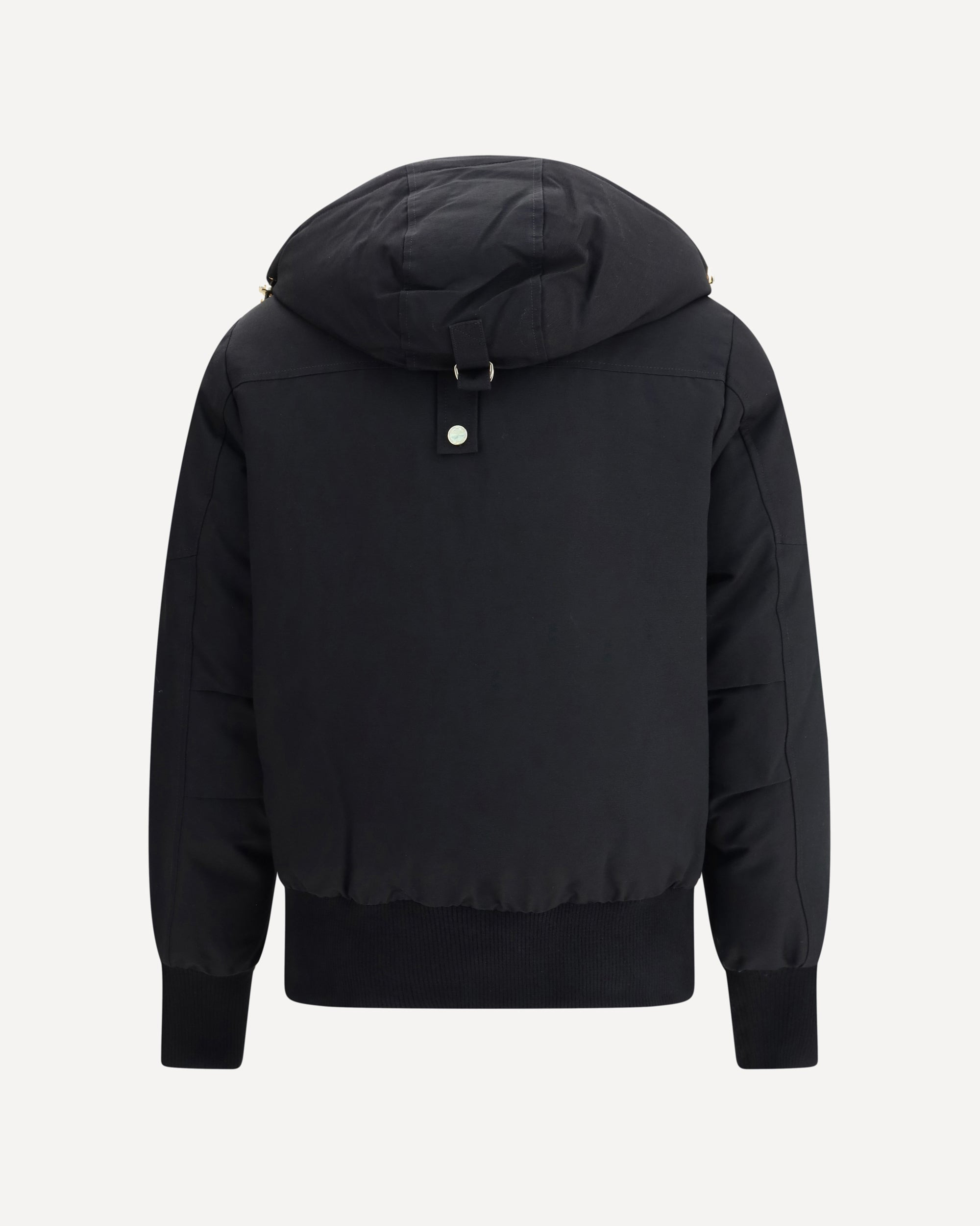 The Gold Series Original Sainte Flavie Bomber Jacket by Moose Knuckles offers a refined take on a timeless silhouette. Crafted from a water-repellent, wind-resistant shell, it is padded with 90/10 down for warmth and comfort even on the coldest days. The hood, enriched with a removable shearling trim and signature decorative pom poms, adds a distinctive and feminine touch. A down-filled collar, front zip fastening, functional front pockets, and the iconic gold metal logo complete this elegant piece from the Gold Series. DETAILS - Sku: M35LB002GS_305 - Season: AW25 - Fit: Slim - Composition: OUTER 74% Cotton 26% Nylon INNER 100% Polyester
