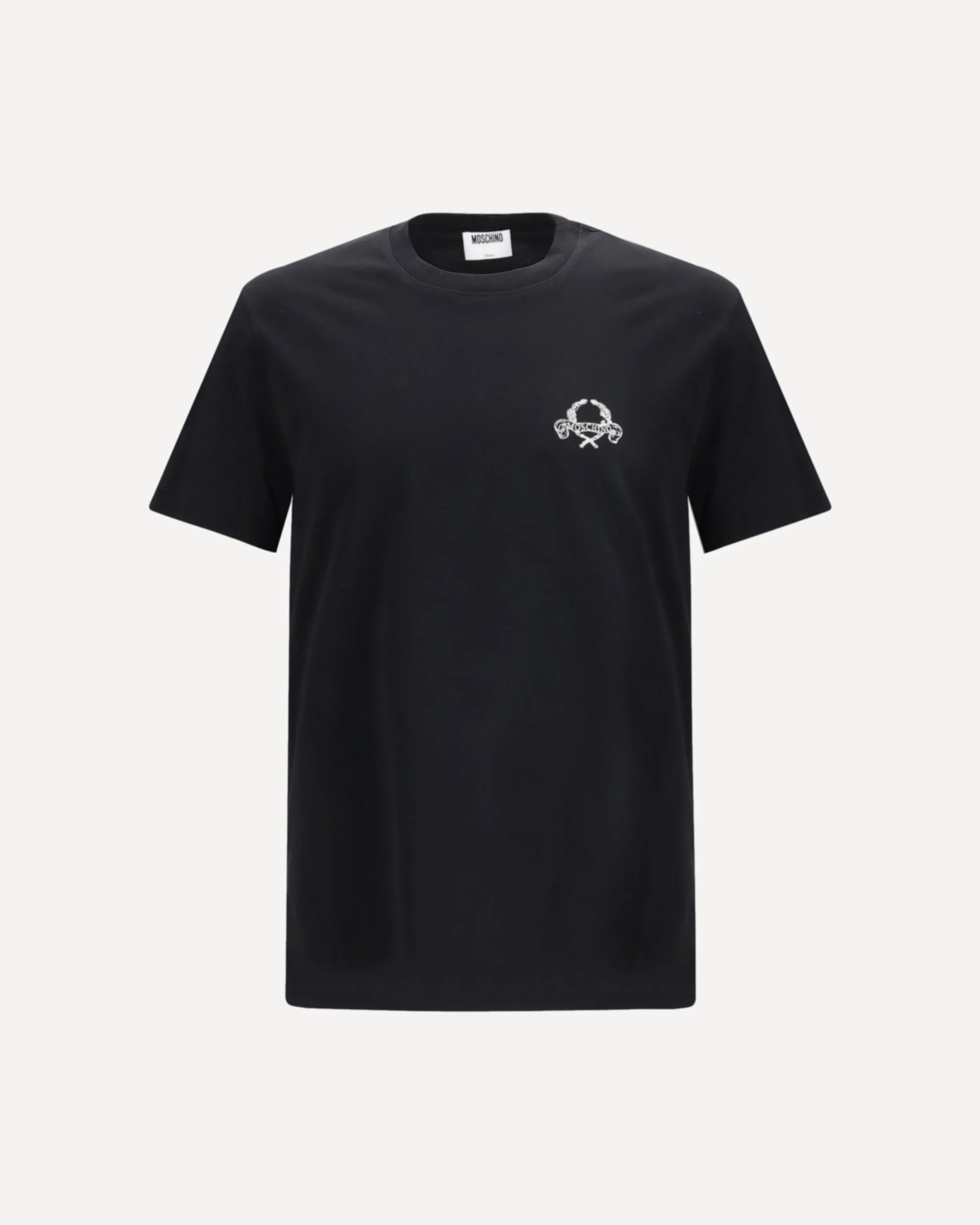 The Laurel Crown Logo T-shirt by Moschino is crafted from organic cotton jersey and features an embroidered archive logo with a laurel crown on the front. The short-sleeved, clean design highlights the brand’s iconic motif, offering comfort and a distinctive everyday style. DETAILS - Sku: 261ZZA07180241_1555 - Season: SS26 - Fit: Regular - Composition: GENERAL 100% Cotton - MADE IN PORTUGAL
