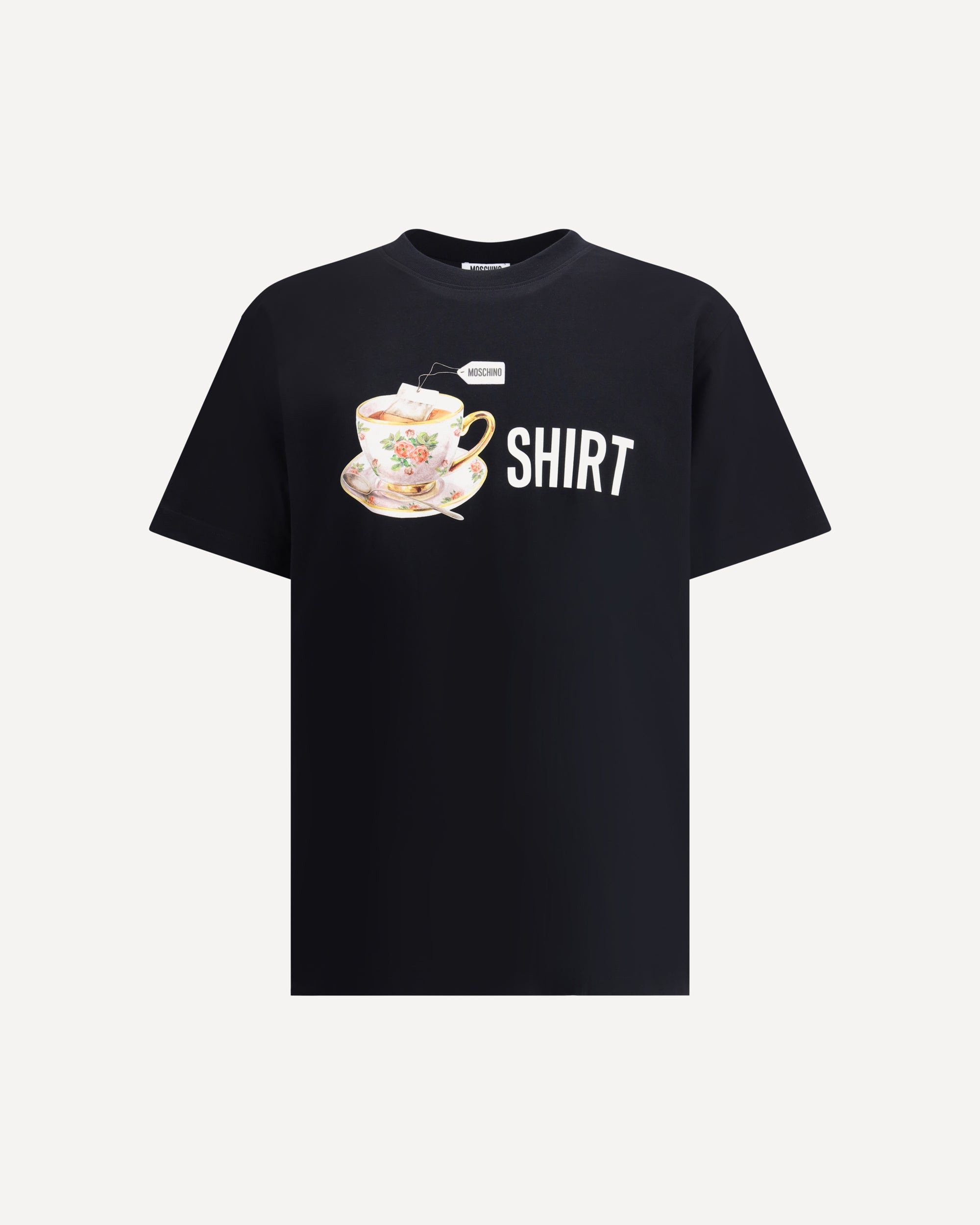 Moschino's cotton T-Shirt combines irony and graphic style in the full spirit of the brand. Made from soft cotton, it features a ribbed crew neck, the iconic contrasting monogram on the front and a decorative print depicting a teacup for an original and playful touch. DETAILS - Sku: 252ZZ0728252ZZ5241_1555 - Season: AW25 - Fit: Regular - Composition: GENERAL 100% Cotton - MADE IN PORTUGAL