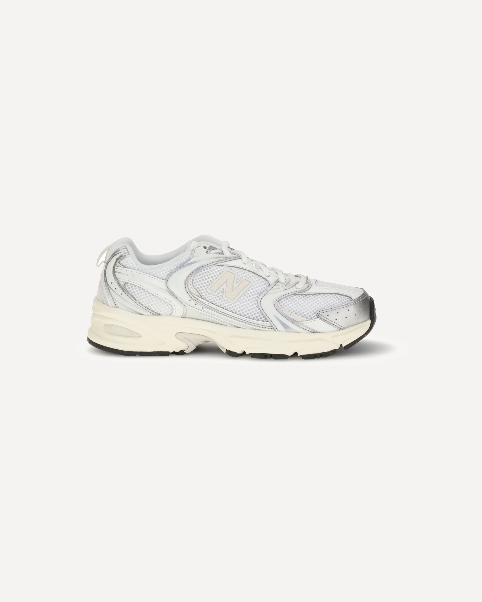 New Balance's 530 Lifestyle Sneakers combine style and comfort with a modern design. Featuring mesh details on the side panels, they offer breathability and lightness. The brand's iconic monogram, applied on the side, adds a distinctive touch. The front lace-up closure ensures an adjustable fit, while the logo patch on the tongue completes the look. The flat rubber sole provides cushioning and stability, making them perfect for everyday comfort wear. DETAILS - Sku: U530ESB_SILVERMETA - Season: AW25 - Composition: SOLE 100% Rubber UPPER 100% Polyamide - MADE IN U.S.A.