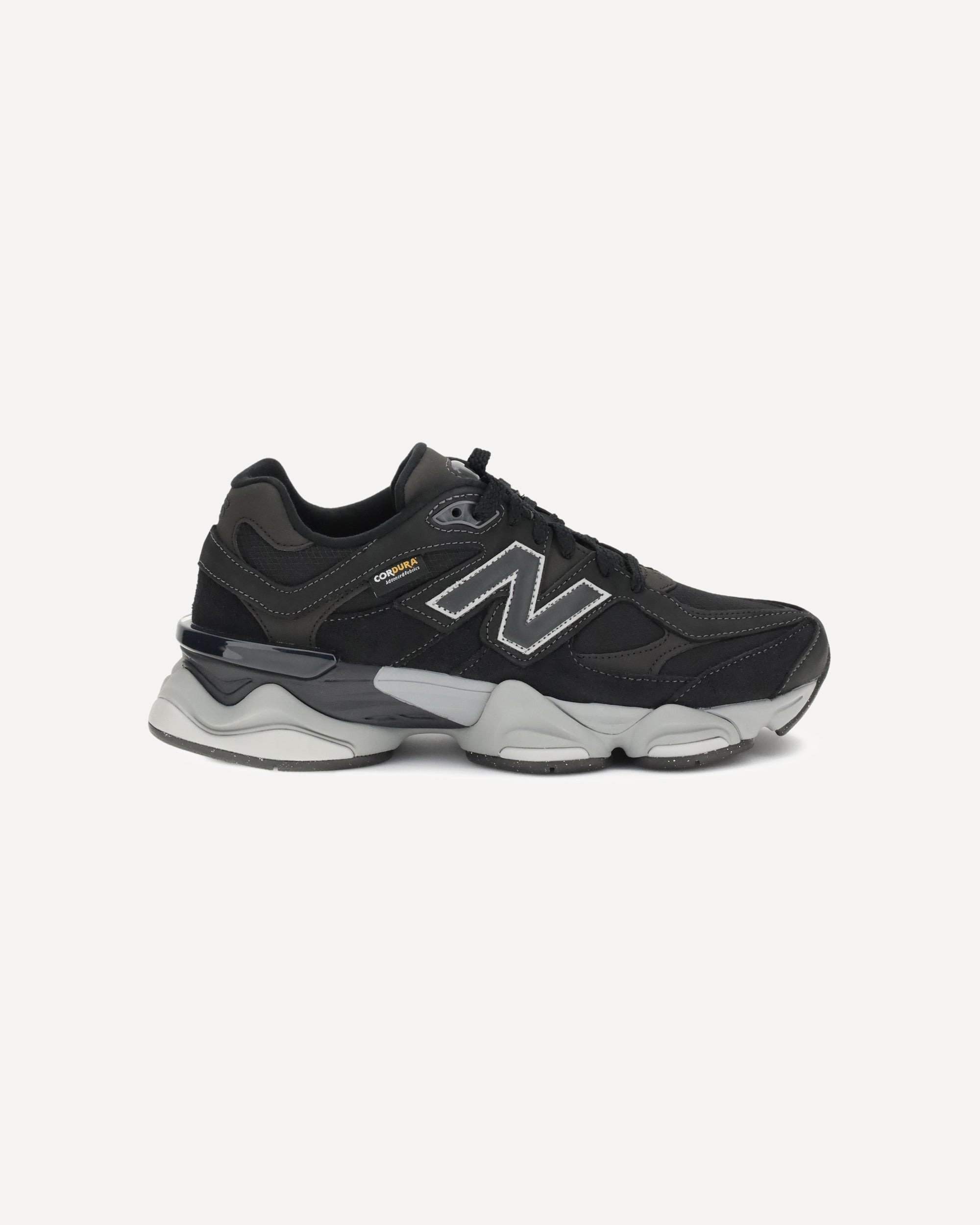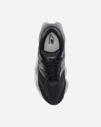 9060 Sneakers by New Balance reinterpret the retro-running aesthetic with a bold, futuristic twist. The breathable mesh upper is enhanced with suede inserts, creating a dynamic and refined play of textures. The silhouette is streamlined by the elongated toe box and raised, rubber-reinforced outsole, ensuring comfort and stability. The iconic contrasting monogram on the side panels and the logoed tongue complete the design with an immediate nod to the brand's identity. DETAILS - Sku: U9060ORA_BLACK - Season: AW25 - Composition: GENERAL 30% Leather 40% Polyester 30% Rubber - MADE IN U.S.A.