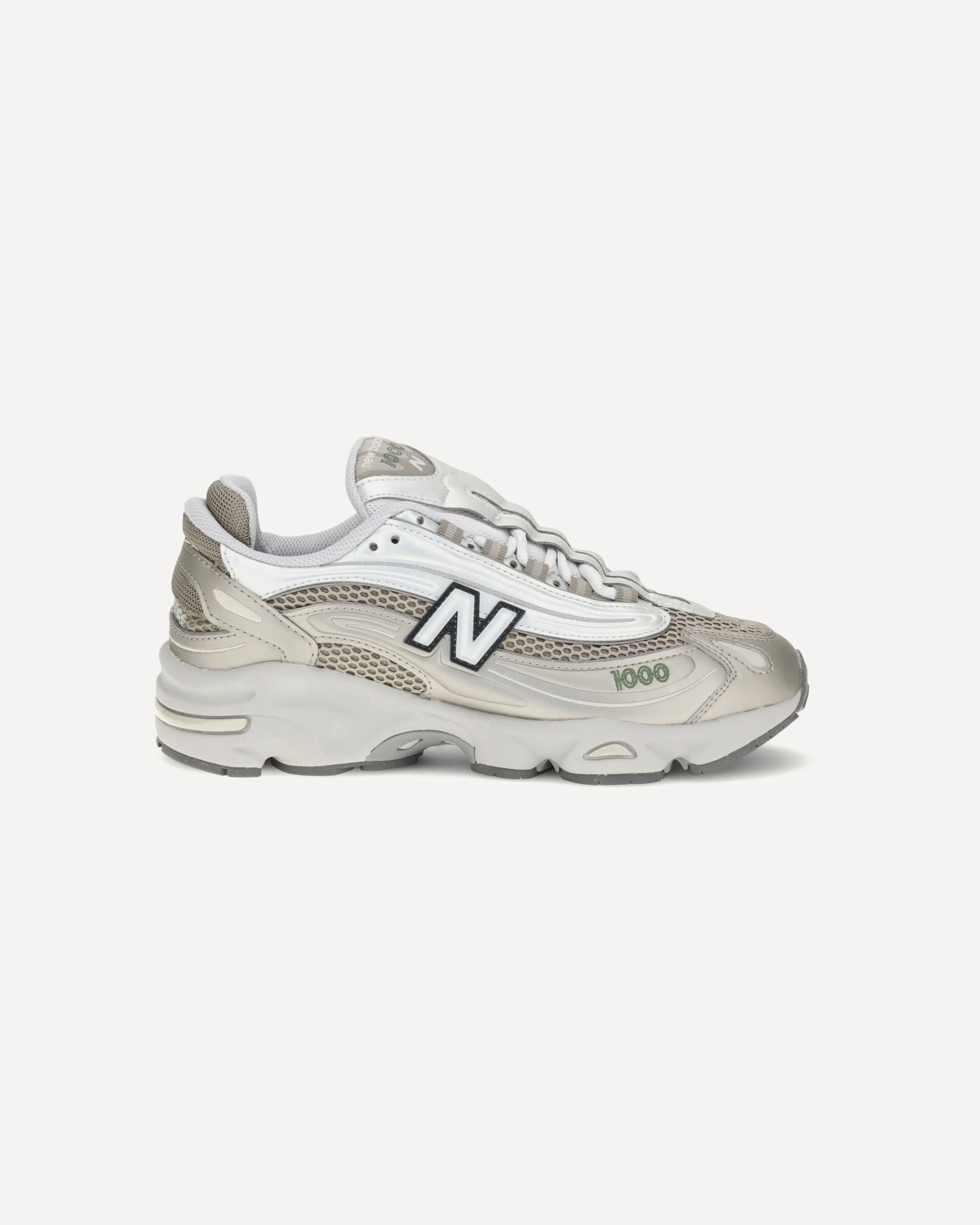Sneakers 1000 by New Balance, the standard mesh upper and suede overlay design is inverted, with mesh layers emerging from the more prominent overlay panels for a refined, technology-inspired look. The segmented outsole features ABZORB cushioning in the heel and forefoot, with Stability Web support in the midfoot, rubberized "N" logo with clear outline, external lacing structure with nylon eyelets. DETAILS - Sku: M1000N_ARIDSTONE - Season: AW25 - Composition: UPPER 50% Polyamide 50% Calf Leather Bos Taurus SOLE 100% Rubber - MADE IN U.S.A.