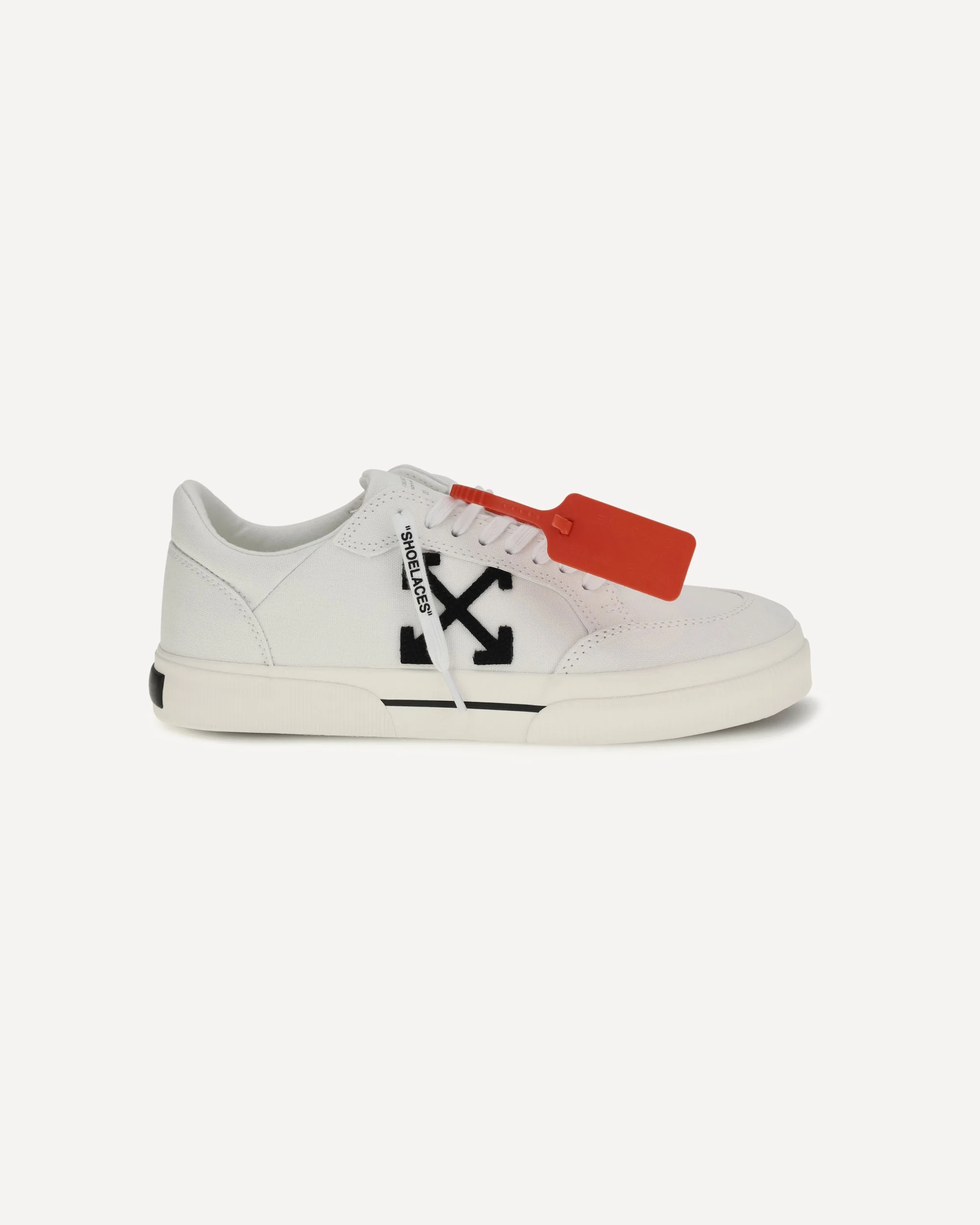 The New Low Vulcanized canvas Sneakers by Off-White are inspired by the world of skateboarding and crafted from Tencel and cotton panels, featuring an embroidered Arrow logo. The vulcanized rubber outsole ensures durability and stability, while the chunky laces—featuring the brand’s iconic slogan and the “ZIP TIE” tag—complete the distinctive and instantly recognizable design. DETAILS - Sku: OMIA293C99FAB003_0110 - Season: SS26 - Composition: UPPER 100% Calf Leather Bos Taurus SOLE 100% Rubber - MADE IN CHINA