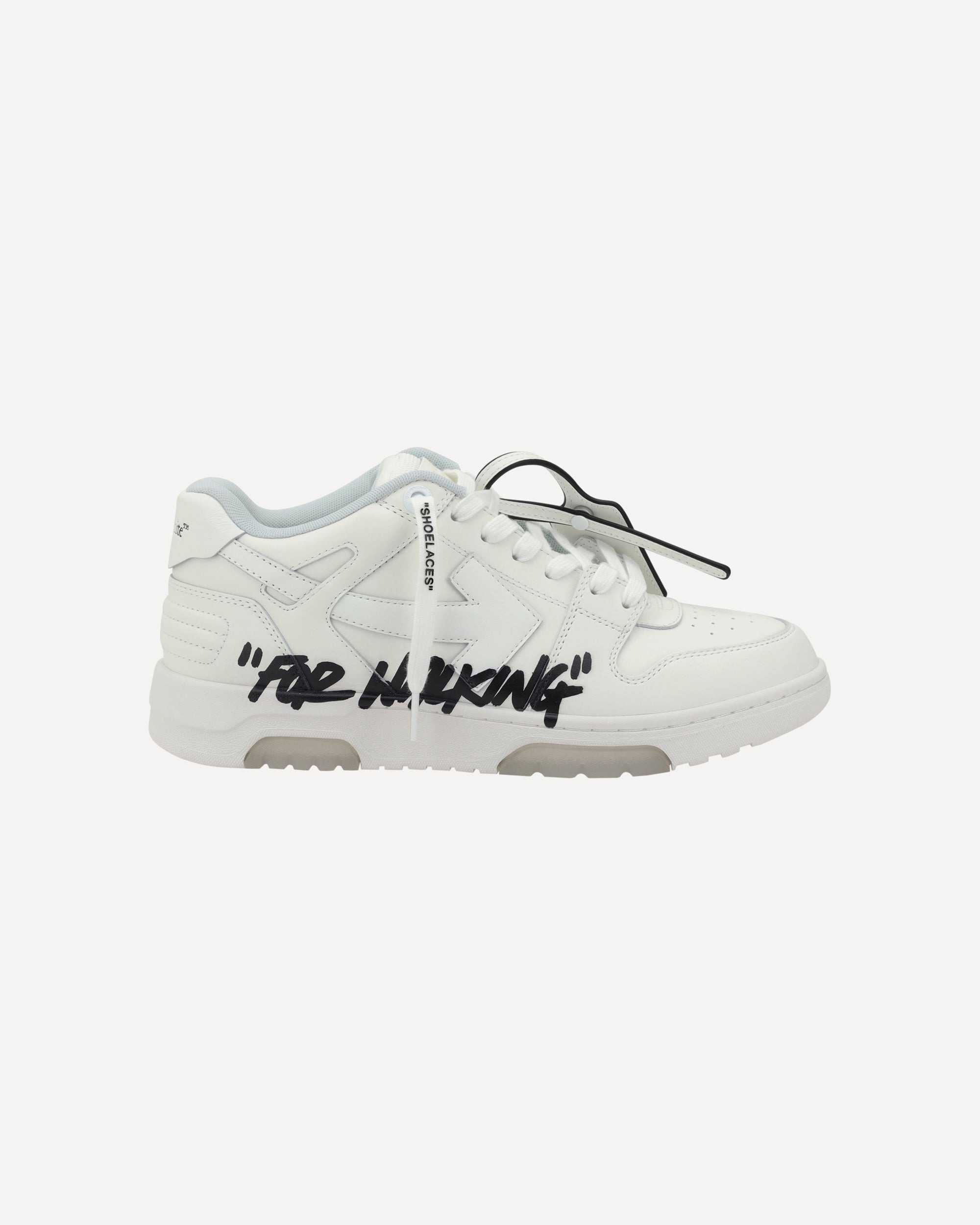 Leather Out Of Office For Walking Sneakers from Off-White feature a perforated round toe for breathability and a front lace-up closure. The paneled design is enhanced by the distinctive Arrows motif on the side panel, while the zipper tie logo tag adds a distinctive detail. Ankle padding and a logoed tongue provide comfort, while a logoed insole and flat sole complete the look. The logoed heel adds an extra touch of style. DETAILS sku OMIA189C99LEA01A_0110 composition: RUBBER 100% CALF LEATHER BOS TAURUS 100% color group: WHITE gender: MAN season: SS25 size chart: SHOES IT category name: SNEAKERS