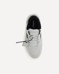 Leather Out Of Office Sneakers by Off-White feature a lace-up front closure and a round toe. The side panels are decorated with the brand's iconic Arrow logo, while the flat sole ensures comfort. A distinctive detail is the applied zipper tie tag on the front, accompanied by the contrasting logo on the heel, giving it an urban and contemporary feel. DETAILS - Sku: OMIA189C99LEA019_0110 - Season: AW25 - Composition: SOLE 100% Rubber UPPER 100% Calf Leather Bos Taurus - MADE IN CHINA