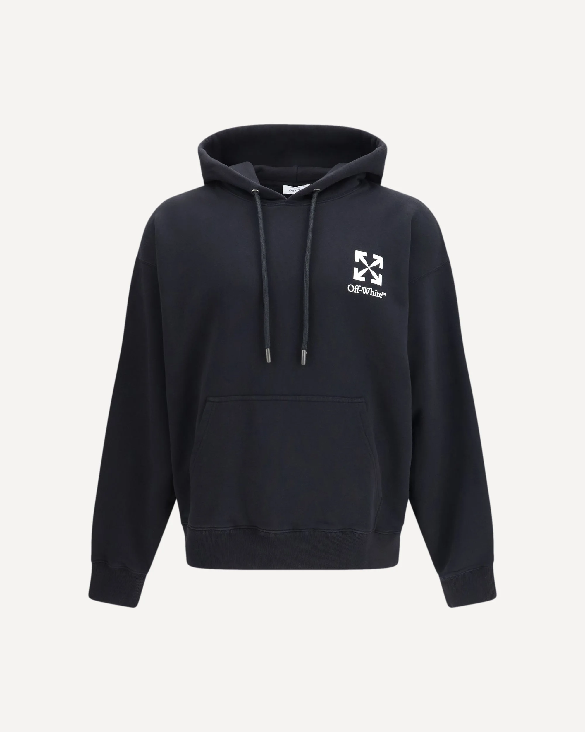 The Small Arrow Skate Hoodie with adjustable drawstring hood featuring metal tips, Arrow motif at the chest, kangaroo pocket, ribbed cuffs and hem, and clean back panel by Off-White embodies understated urban sophistication. Crafted from high-quality fabric, it enhances the silhouette with a refined and elevated streetwear attitude. The signature Arrow motif at the chest introduces the unmistakable identity of Off-White through a subtle yet recognisable graphic element, balanced by the minimal back design. This Hoodie by Off-White defines contemporary style through clarity and confident simplicity. DETAILS - Sku: 44MBB085S26F00O001_0001 - Season: SS26 - Fit: Regular - Composition: GENERAL 100% Cotton - MADE IN PORTUGAL