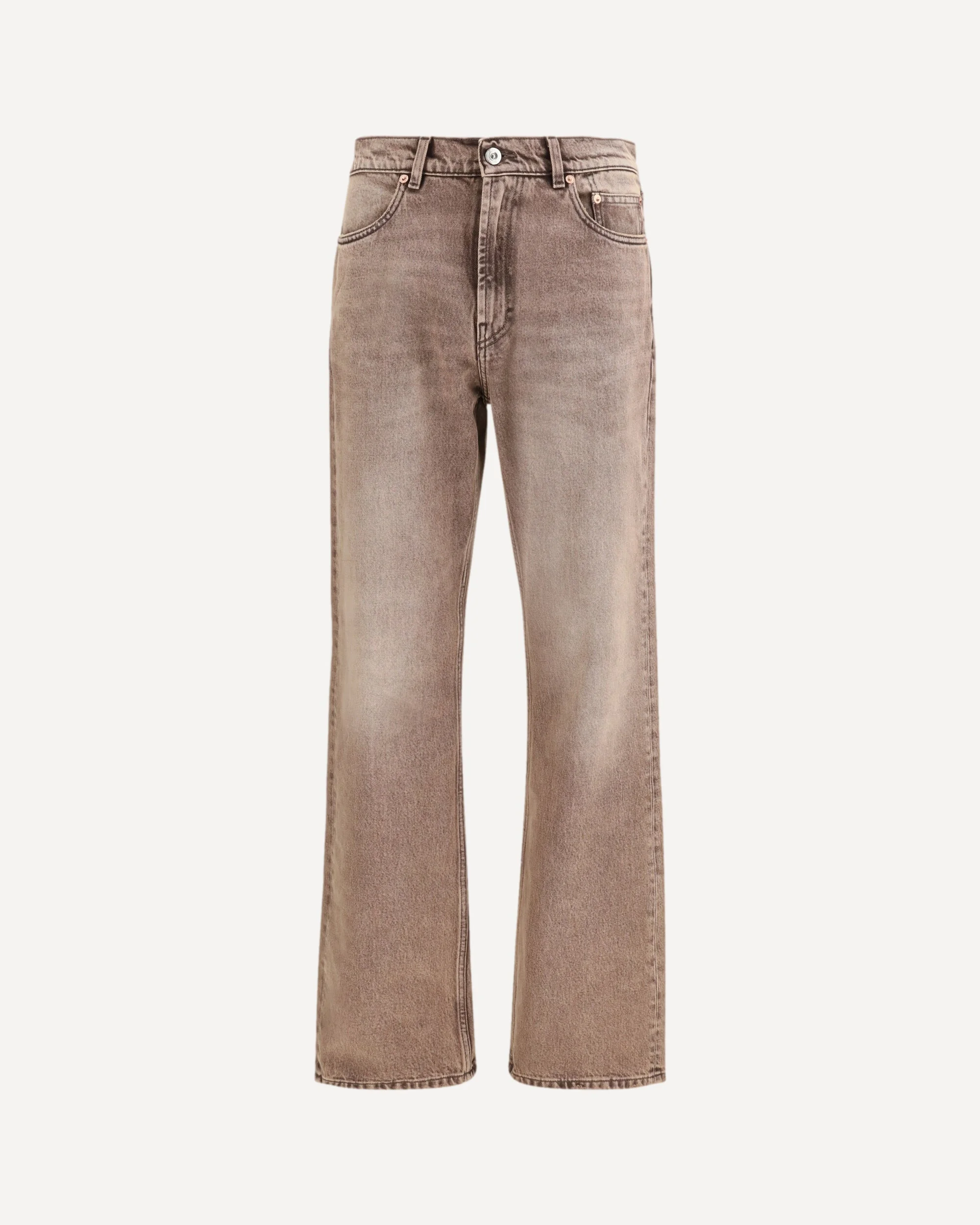 The Carlson Cut Clay Breeze Wash Jeans by Our Legacy deliver a strong silhouette inspired by lived-in denim. Defined by a faded, naturally worn wash, they feature a high waist with a straight hip line and extended leg length, finished with a subtle boot cut. A five-pocket construction with steel rivets and an embossed Our Legacy patch reinforces an authentic, functional aesthetic, completed by a zip fly. A piece designed to express denim with confidence and contemporary precision. DETAILS - Sku: M2265CCL_CLAYBREEZE - Season: SS26 - Fit: Regular - Composition: GENERAL 80% Cotton 20% Recycled Cotton - MADE IN PORTUGAL