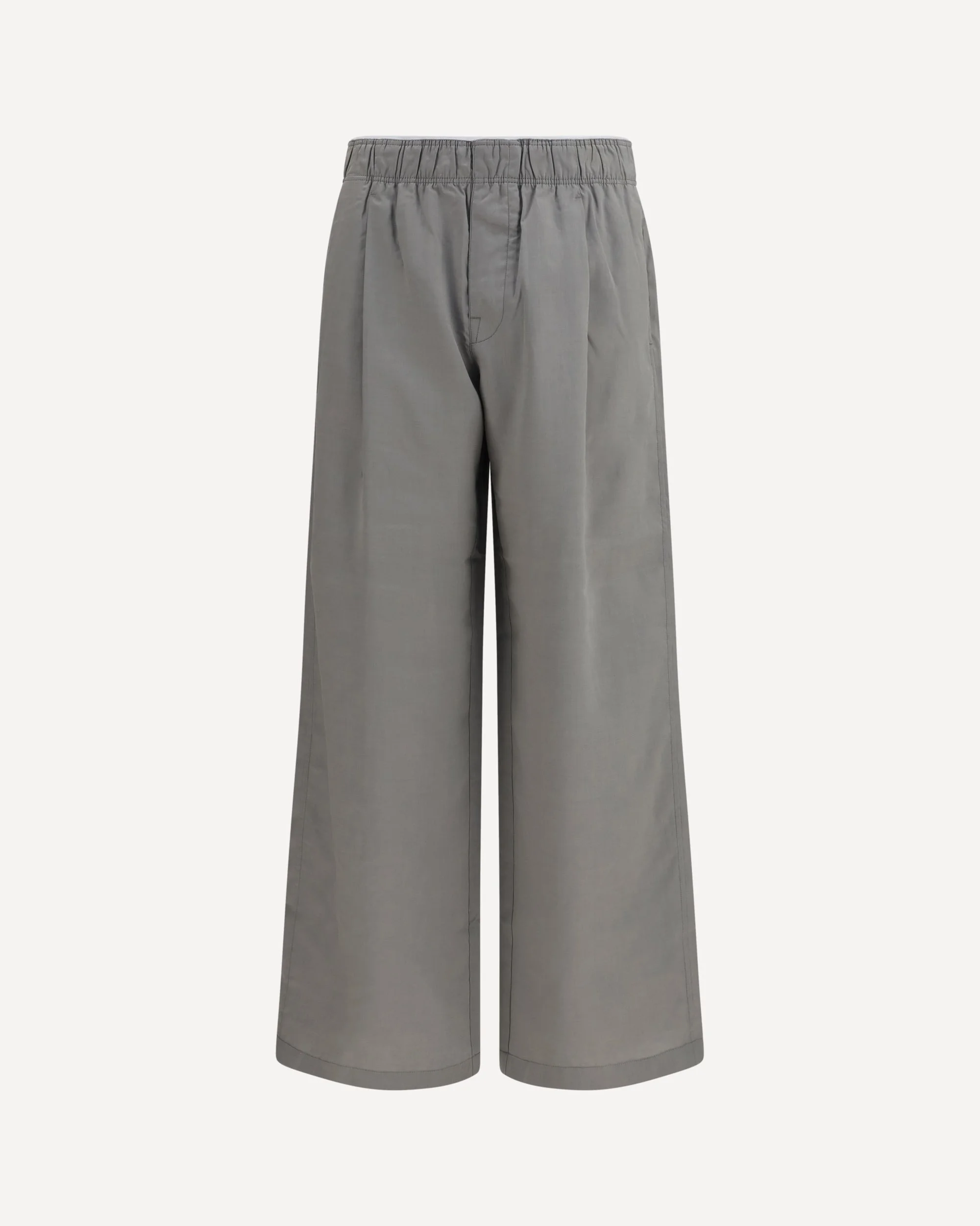 The Leisure Pants by Our Legacy stand out for a relaxed silhouette that interprets the contemporary wardrobe with essential clarity. The Leisure model by Our Legacy features a wide leg that enhances the movement of the silhouette. The elasticated waistband introduces comfort and ease, while the concealed button fastening keeps the design clean. The Leisure pants by Our Legacy complete the garment with a balance of minimalism and functionality. DETAILS - Sku: M2264LWG_WILLOWGREY - Season: SS26 - Fit: Regular - Composition: GENERAL 77% Viscose 23% Rayon - MADE IN LITHUANIA