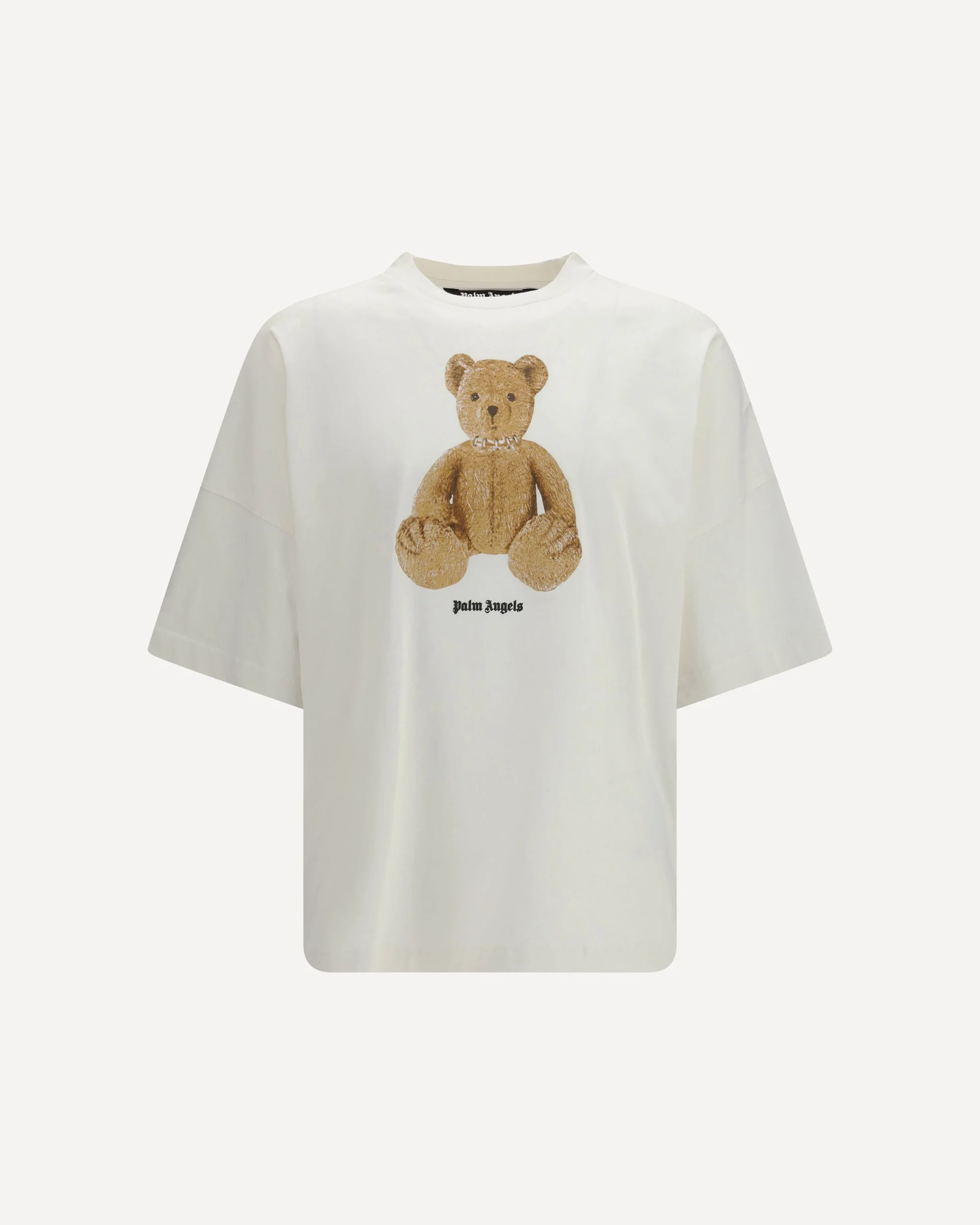 The Bear print T-shirt by Palm Angels stands out for an essential silhouette that interprets streetwear with a contemporary attitude. The cotton T-shirt model by Palm Angels features a crew neck and short sleeves that define the structure of the garment. The Bear print on the front introduces a distinctive graphic element. The Bear print T-shirt by Palm Angels completes the design with a clean and versatile silhouette. DETAILS - Sku: PMAA10BS26JER004_0360 - Season: SS26 - Fit: Regular - Composition: GENERAL 100% Cotton - MADE IN ITALY