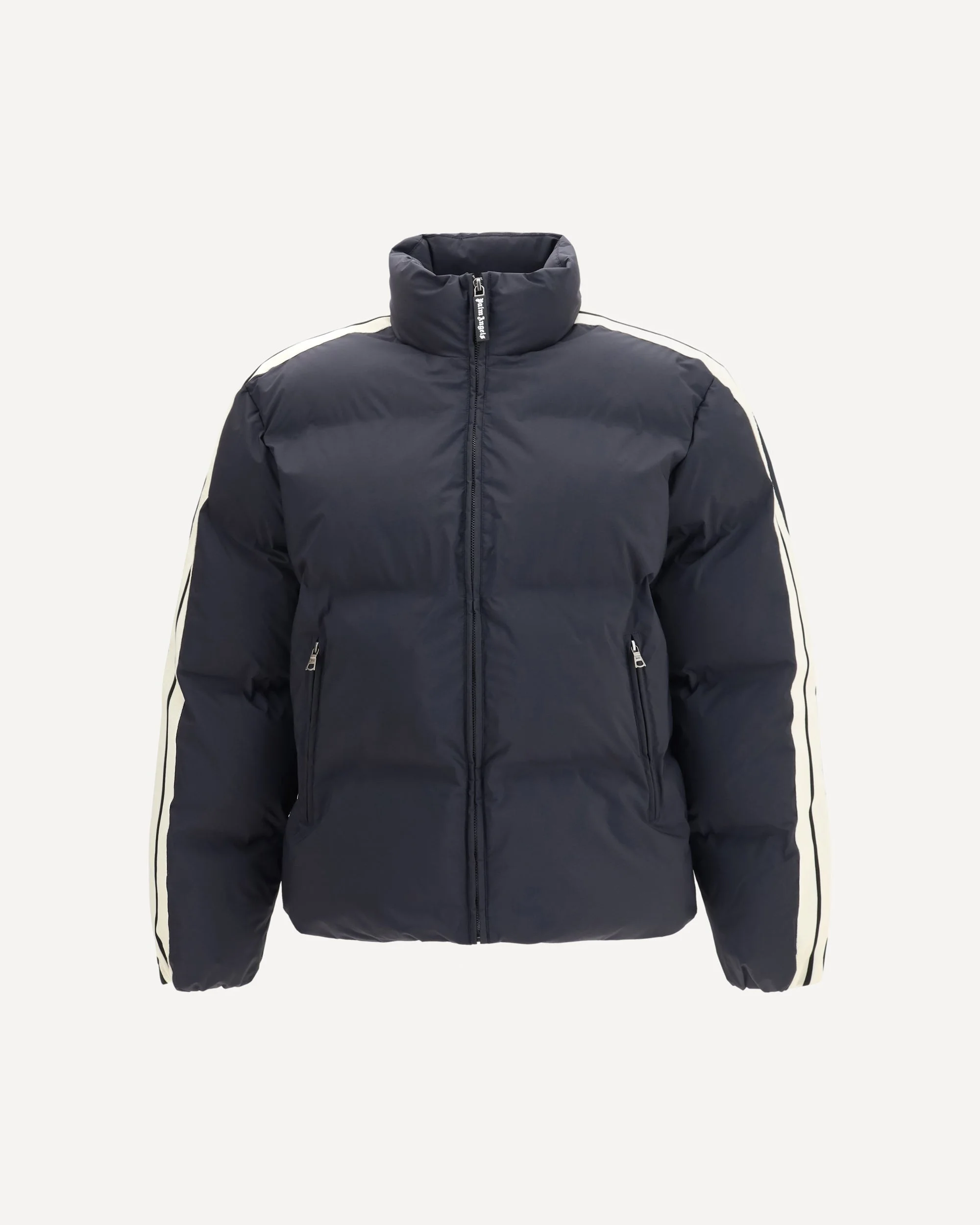 The classic logo track Down Jacket by Palm Angels stands out for a sporty silhouette that reinterprets the brand’s heritage with a contemporary edge. The jacket model by Palm Angels features down filling and a standing collar that define the structure of the garment. The full front zip closure with a branded puller introduces a functional detail. Contrasting side bands along the sleeves and the Curved Logo print on the back add distinctive and dynamic elements. Side zip pockets complete the Classic Logo Track down jacket by Palm Angels with a practical and impactful silhouette. DETAILS - Sku: PMED057S26FAB002_100A - Season: SS26 - Fit: Regular - Composition: GENERAL 100% Polyamide - MADE IN ITALY