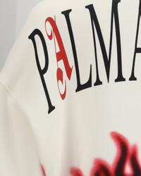 Cotton hooded Sweatshirt by Palm Angels with an oversized fit. It features a kangaroo patch pocket on the front and a contrasting flame print along the lower body and sleeves, both on the front and back. Completing the design is the brand's iconic contrasting monogram on the back for a bold, impactful look. DETAILS - Sku: PMBB17EF25FLE002_0384 - Season: AW25 - Fit: Oversize - Composition: GENERAL 100% Cotton - MADE IN ITALY