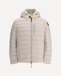 Parajumpers' Last Minute hooded Down Jacket, treated with a water-repellent finish, is designed for comfort and protection. Featuring an adjustable hood with drawstring and front closure with a double-slider zipper, it offers three exterior zippered pockets and an interior pocket with Velcro closure. It features underarm ventilation, elasticized hem and cuffs and elastic rib inner collar. Completing the design is the Parajumpers patch on the sleeve and the iconic yellow tape at the collar closure. DETAILS - Sku: 25WMPMPUSL02_0772 - Season: AW25 - Fit: Regular - MADE IN INDIA