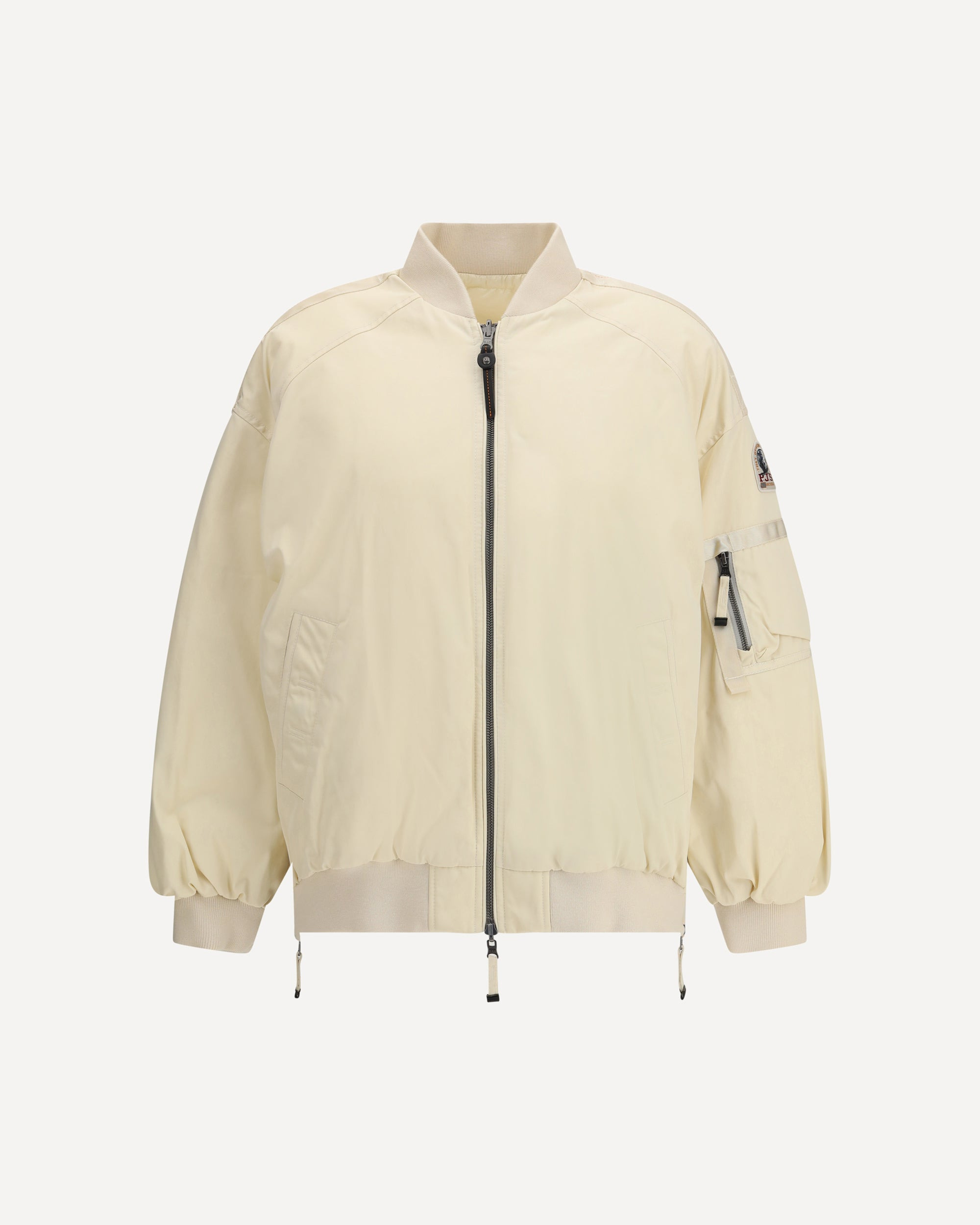 The Reversible Bomber by Parajumpers features an oversized silhouette that blends contemporary style with street-inspired details. One side is smooth, while the reversible side is quilted. It is equipped with a central zipper, side zippers as slits, waist pockets, elasticated hem, and the signature patch on the sleeve, for a distinctive and versatile design. DETAILS - Sku: 25WMPWJKIN32_0775 - Season: AW25 - Fit: Oversize - Composition: OUTER 65% Polyester 35% Cotton INNER 100% Duck Down - MADE IN CHINA