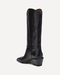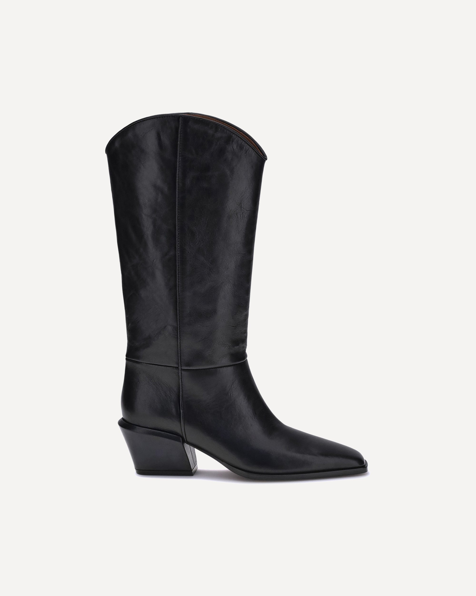 The Bettina Boots by Paris Texas reinterpret the classic Texan with a bold, contemporary elegance. Made of glossy black leather, they feature a tapered silhouette with a pronounced toe and essential details. The chunky covered heel lends stability and character, perfectly balancing style and comfort. A strong and versatile model, perfect for completing urban looks with a bold taste. DETAILS - Sku: PX1707XARVT_BLACK - Season: AW25 - Composition: GENERAL 100% Calf Leather Bos Taurus - MADE IN ITALY