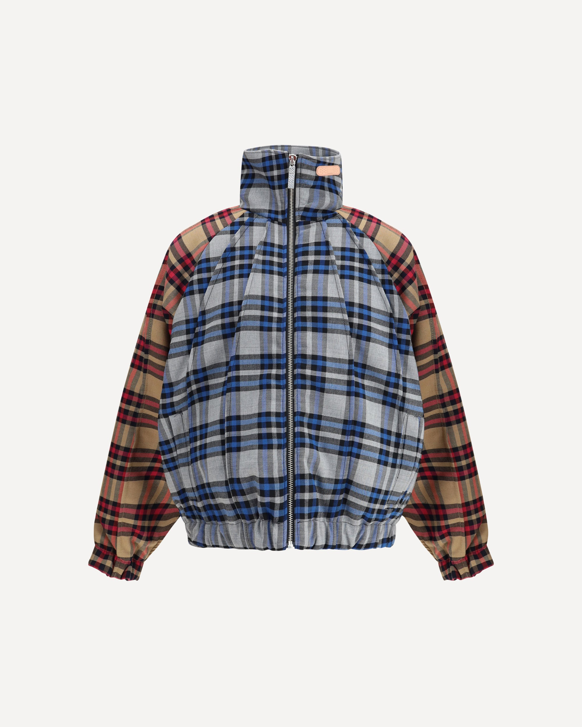 The Federico patchwork check Jacket by PDF CHANNEL reimagines urban style with bold, contemporary flair. Crafted from a wool blend, it features a distinctive patchwork check design that adds movement and character. A full front zip closure and high collar highlight its functional spirit, while raglan sleeves with pleated details at the front and back create a dynamic cut. Elasticated cuffs and hem, side pockets, and full lining complete the piece, ensuring both comfort and practicality with a refined aesthetic. DETAILS - Sku: DFM09006TF133NWASH_NWASH - Season: AW25 - Fit: Oversize - Composition: GENERAL 54% Polyester 23% Fleece Wool 23% Viscose - MADE IN ITALY