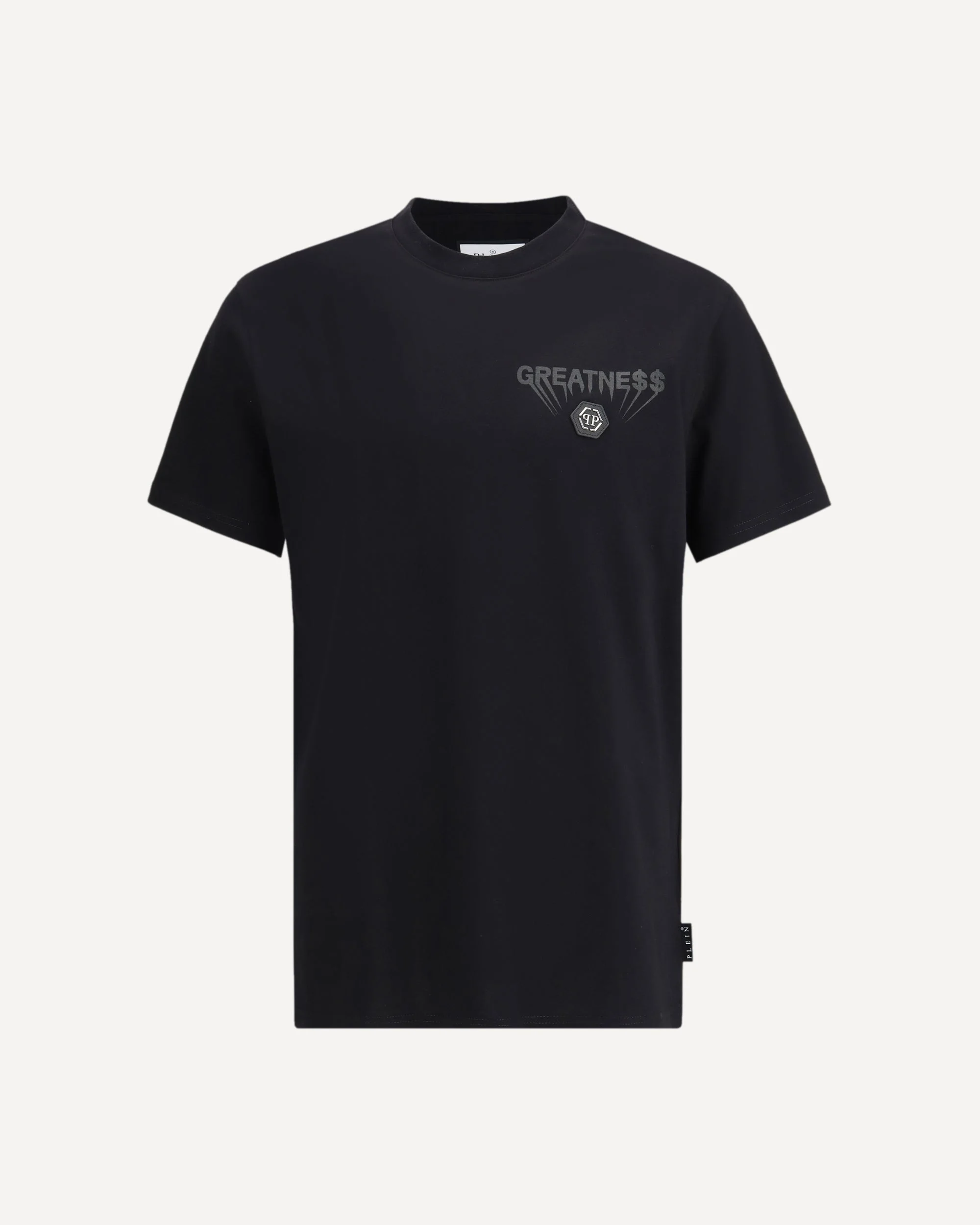 The crew-neck T-shirt by Philipp Plein is crafted from soft cotton, featuring a clean yet distinctive design. The piece is embellished with the brand emblem and the “Grateness” inscription embroidered on the upper left chest. Short sleeves and a regular fit complete the look with a bold, modern touch. DETAILS - Sku: AAECMTK8746PJY002N_0202 - Season: AW25 - Fit: Regular - Composition: GENERAL 100% Cotton - MADE IN TURKEY