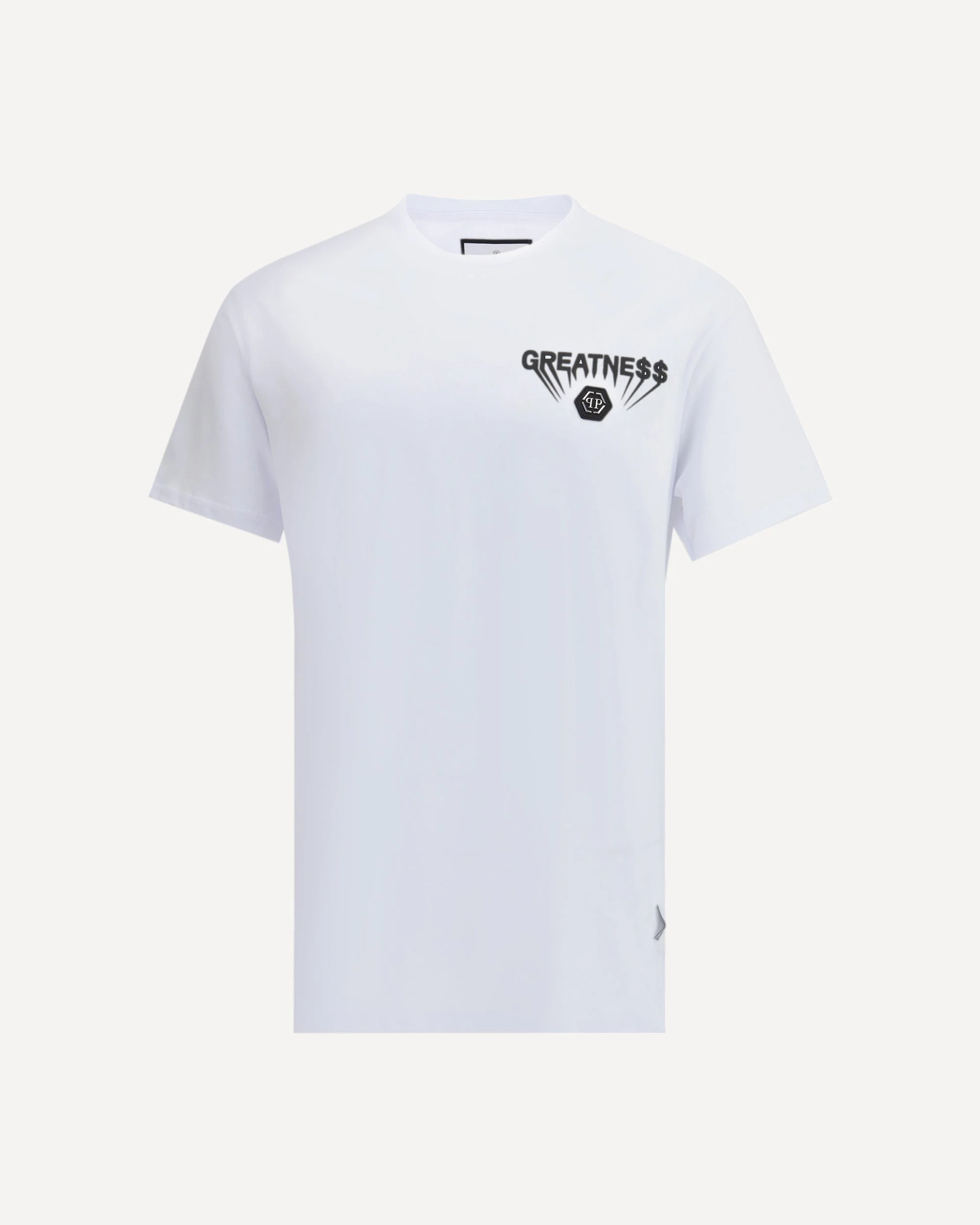 The crew-neck T-shirt by Philipp Plein is crafted from soft cotton, featuring a clean yet distinctive design. The piece is embellished with the brand emblem and the “Grateness” inscription embroidered on the upper left chest. Short sleeves and a regular fit complete the look with a bold, modern touch. DETAILS - Sku: AAECMTK8746PJY002N_01 - Season: AW25 - Fit: Regular - Composition: GENERAL 100% Cotton - MADE IN TURKEY