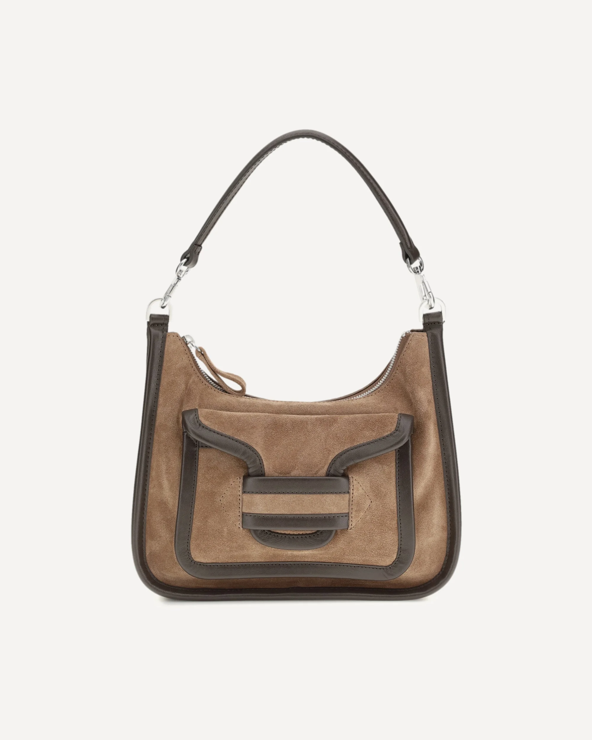 Calfskin Alpha Day Miss Shoulder Bag by Pierre Hardy, removable top handle, front pocket with interlocking flap, adjustable and removable shoulder strap, front magnetic button closure, interior compartment with two slit pockets. DETAILS - Sku: AAV01_BROWN - Season: SS26 - Dimension: 27x24x12 - Composition: GENERAL 100% Calf Leather Bos Taurus - MADE IN MOROCCO