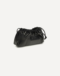 The Double Clutch with eyelets by by Pierre Hardy is crafted from calfskin leather and stands out for its panel decorated with bold metal eyelets. Featuring a leather drawstring closure, double magnetic closure, and detachable thin shoulder strap, it offers practicality and versatility. The embossed PIERRE HARDY logo and interior pocket complete the design with a distinctive and refined touch. DETAILS - Sku: VV09E_BLACK - Season: SS26 - Dimension: 30x9x12 - Composition: GENERAL 100% Calf Leather Bos Taurus - MADE IN MOROCCO