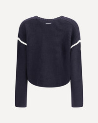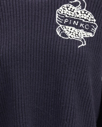 Pinko's Alicudi Sweater, made from soft merino wool, features a ribbed crewneck design for snug comfort. The fit is loose, with long sleeves and dropped shoulders, while contrasting white piping on the neckline, sleeves and embroidered patch-effect logo on the front add a touch of character. The Pinko logo is also echoed on the back, below the collar, for a distinctive detail. DETAILS - Sku: 105397A2PK_EZ1 - Season: AW25 - Fit: Regular - Composition: GENERAL 100% Wool - MADE IN CHINA